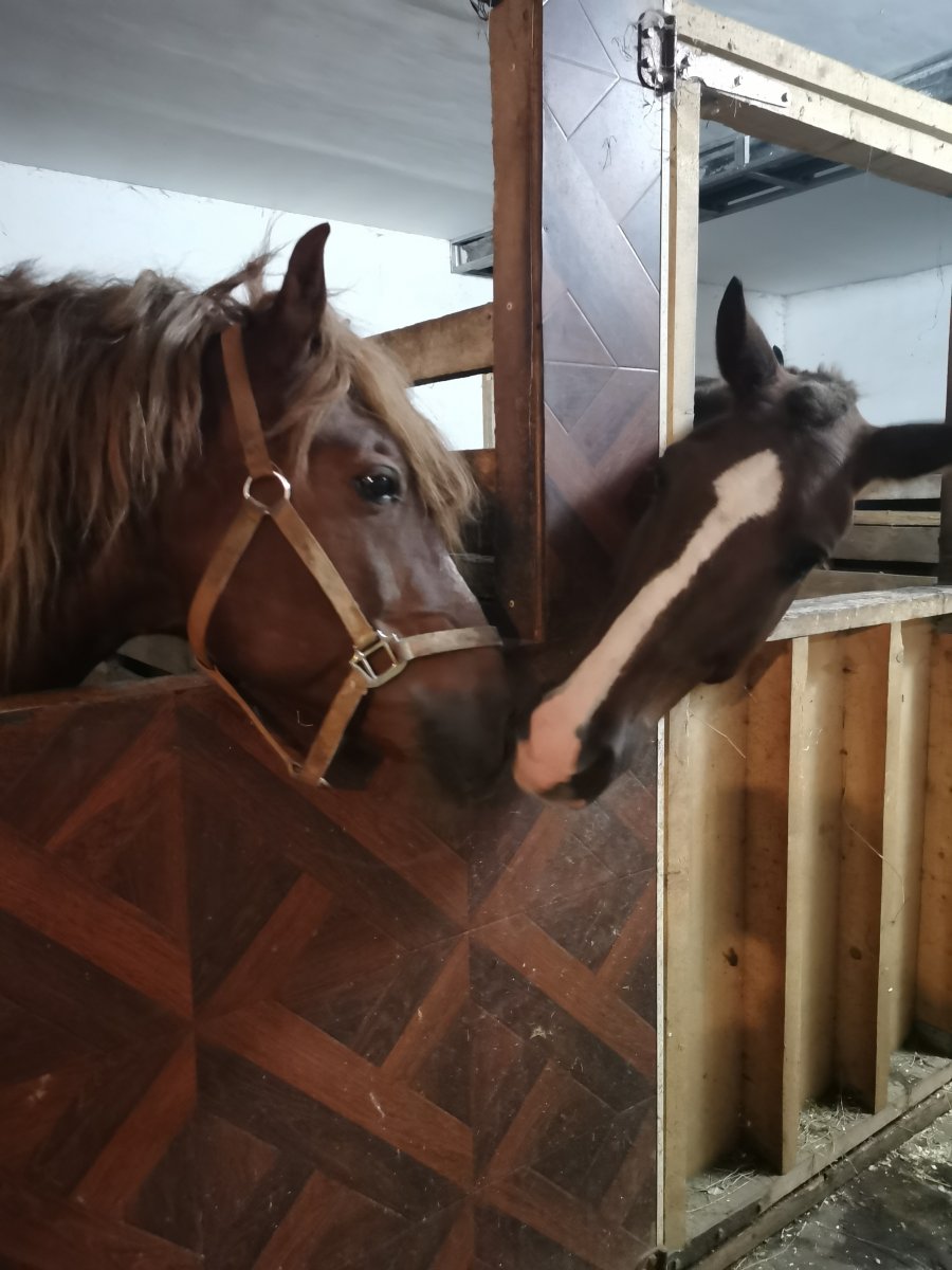 Заезжен. Не жеребцует, очень спокоен, гуляет рядом с жеребцами и стоит спокойно с соседом-жеребцом. В руках Общительный и контактный. Любит много нового и хорошо обучаем. Любит прыгать, не боится жердей и стоек.