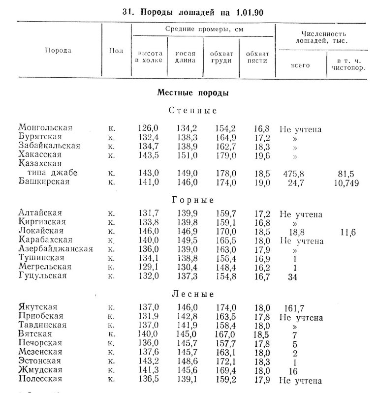 кабардинская. Лошади эти – среднего роста (выше 2 арш.), мускулистые, несколько горбоносые, но в общем очень сухие, с хорошо развитою подпругою и крепкою спиною. По отзывам знатоков, ноги у большинства кабардинских лошадей сухие, на низких бабках, с правильными крепкими копытами; при большой сухости ног, они не тонки и с заметно очерченными сухожилиями; колено широко и прочно; задние ноги правильно поставлены, и весь костяк хорошо развит. Масть по преимуществу гнедая или рыжая. Несомненно, что эта порода представляет и теперь весьма хорошую кавалерийскую лошадь, а при некотором прилитии крови скакуна от неё возможно вывести замечательных лошадей для нашей конницы. Главным рассадником кабардинских лошадей является Кабардинская равнина в Пятигорском округе, Терской области. Нужно думать, что в улучшении кабардинской породы принимали участие арабские производители, завезённые туда в начале прошлого столетия из Турции и других государств Востока. Хотя коневодство в Кабарде с каждым годом падает и первоначальный тип лошадей изменился к худшему, но слава кабардинской лошади ещё не померкла. Кабардинская лошадь окончательно формируется в возрасте лет шести и лет до шестнадцати способна на всякую работу; она легко адаптируется и годна как для упряжи, так и для верховой езды. По росту кабардинская лошадь самая крупная из кавказских пород: значительная часть кабардинских лошадей выше 2 арш.