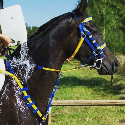 Это можно купить отдельно две уздечки (желтую и голубую, куча цвета голубого неба есть, нет просто именно такой комбинации) и скомбинировать, получатся 2 желто-голубые...если ехать на международные старты, то комбинируешь 2 и у двух лошадей по уздечке получится цвета нашего флага :)