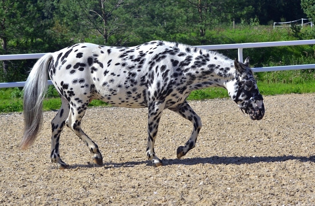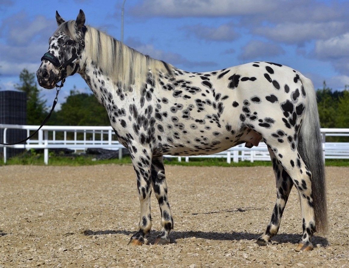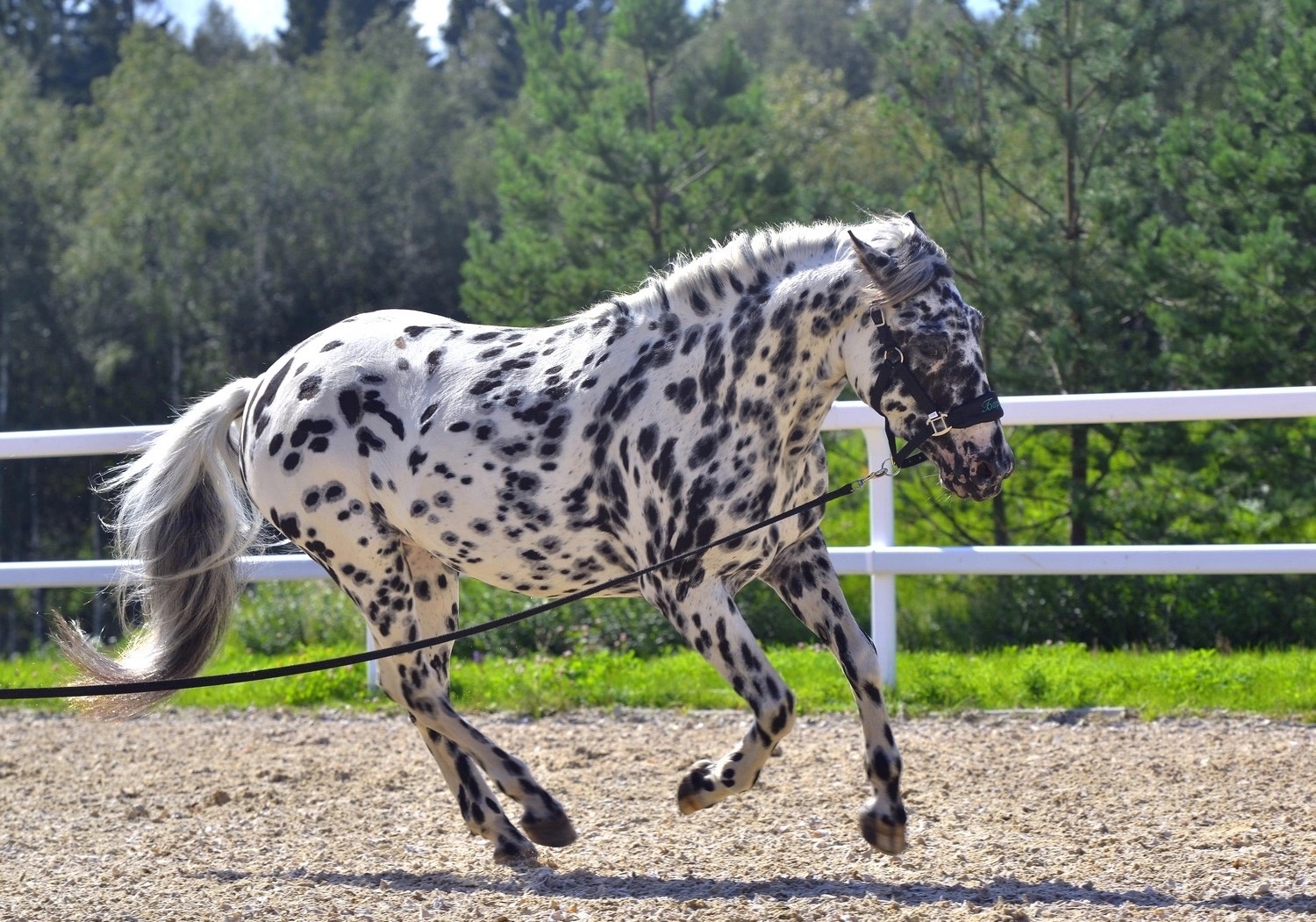 Живет в отличных условиях, сено в волю, грамотное кормление без зерна, выгул круглосуточно или по погоде, витамины-минералы, полноценный тренинг.