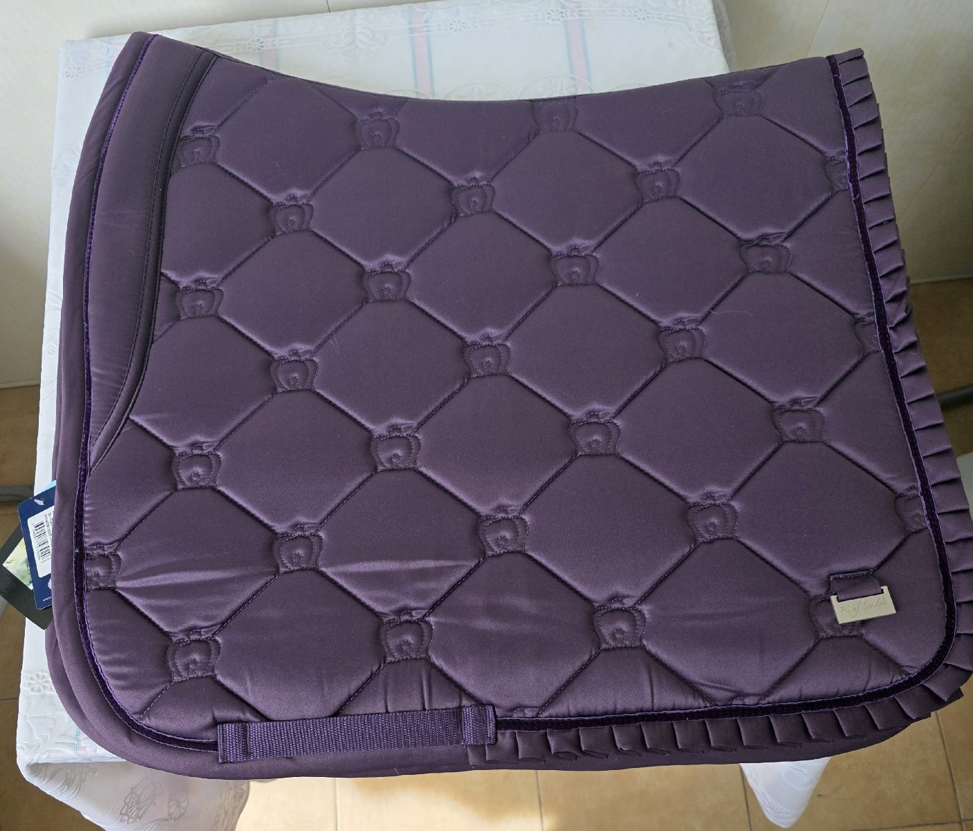 На лошадь не примерялся, на конюшне не был, вел домашний образ жизни. Покупался, потому что фиолетовый, продается, потому что конные вещи перестали вмешаться в квартиру.