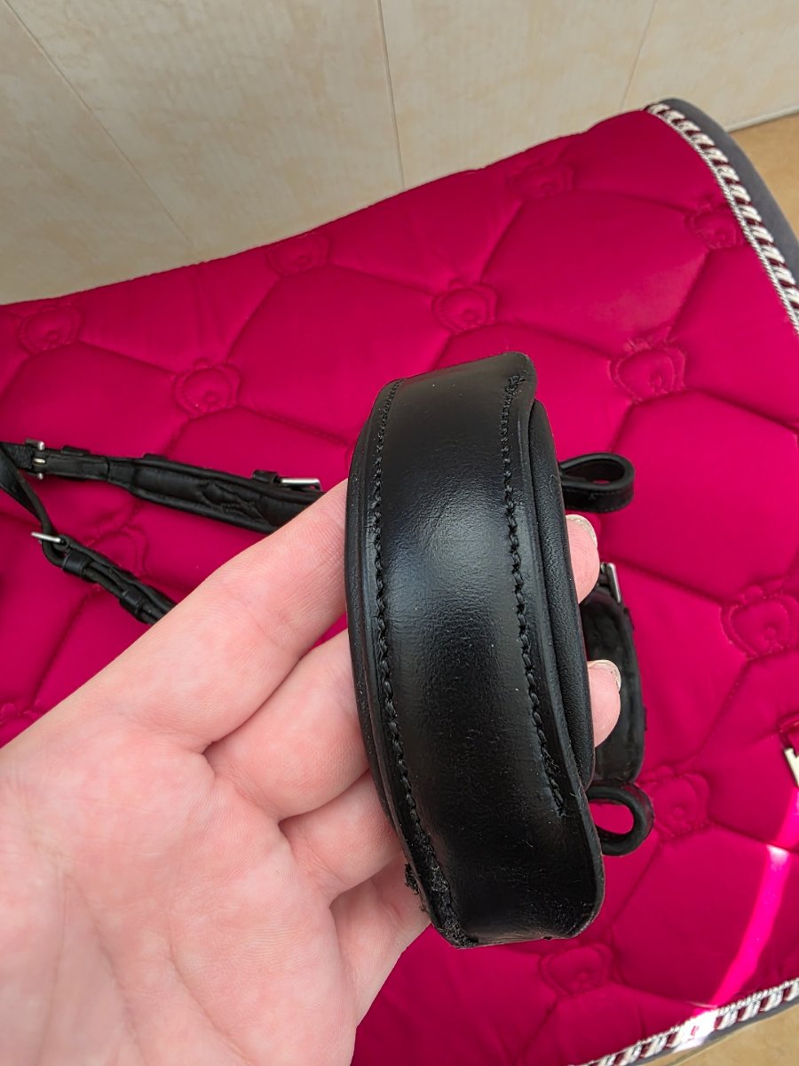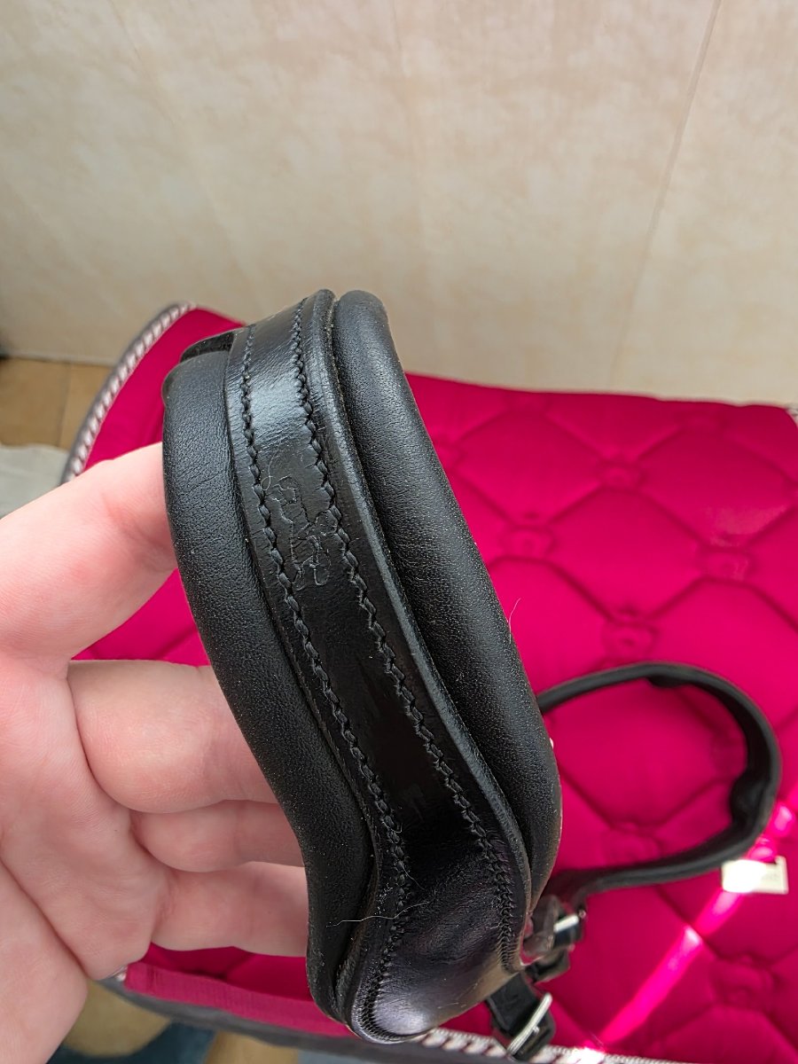 Зашито переносье (кожа очень мягкая, конь зацепился переносьем и мотнул головой) сам шов мягкий, не мешает эксплуатации.