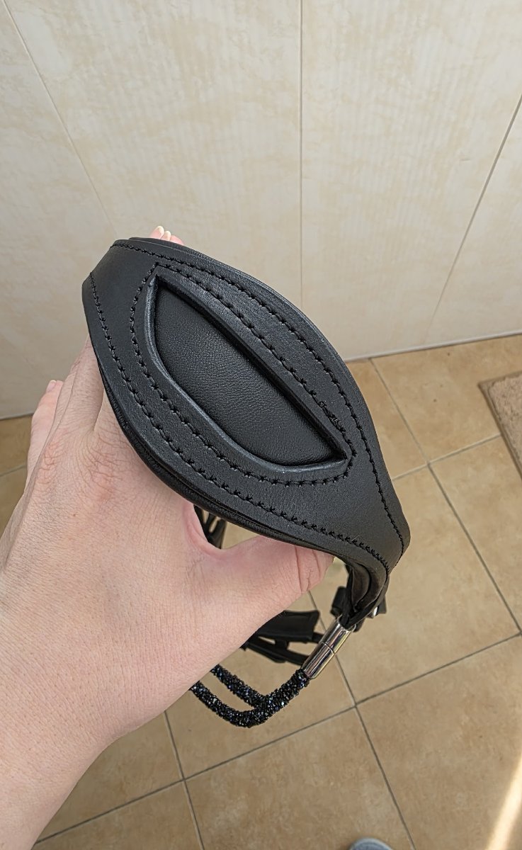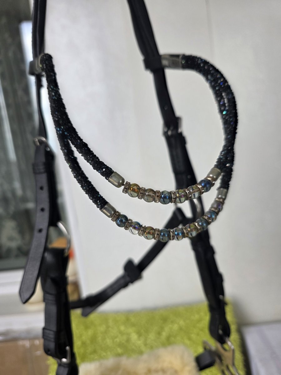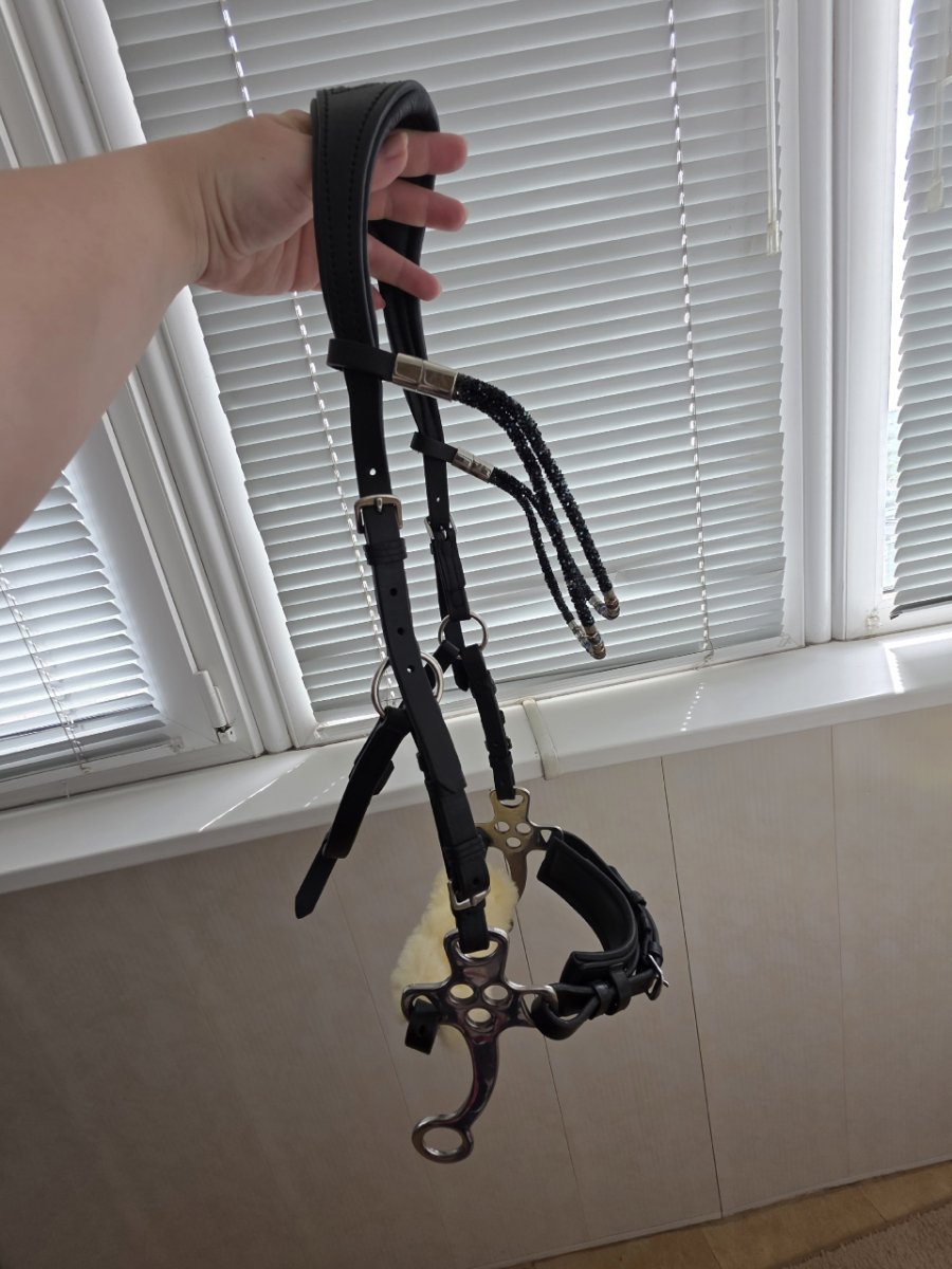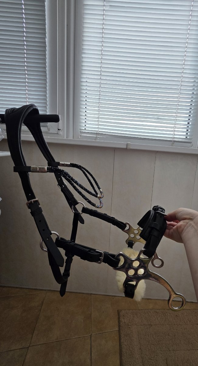 (У меня есть отдельно шокемюлевский налобник с кристаллами на черной коже, могу продать к уздечке)