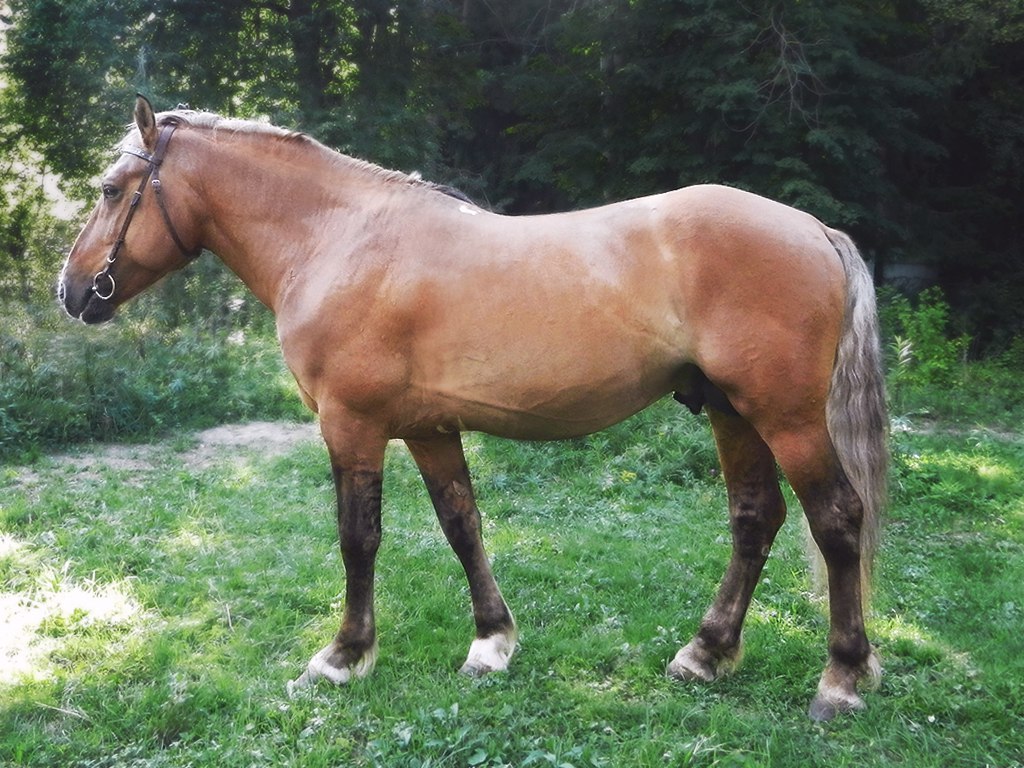 Масть с уточнением: золотисто-каурая, носитель аллеля псевдосаврасости