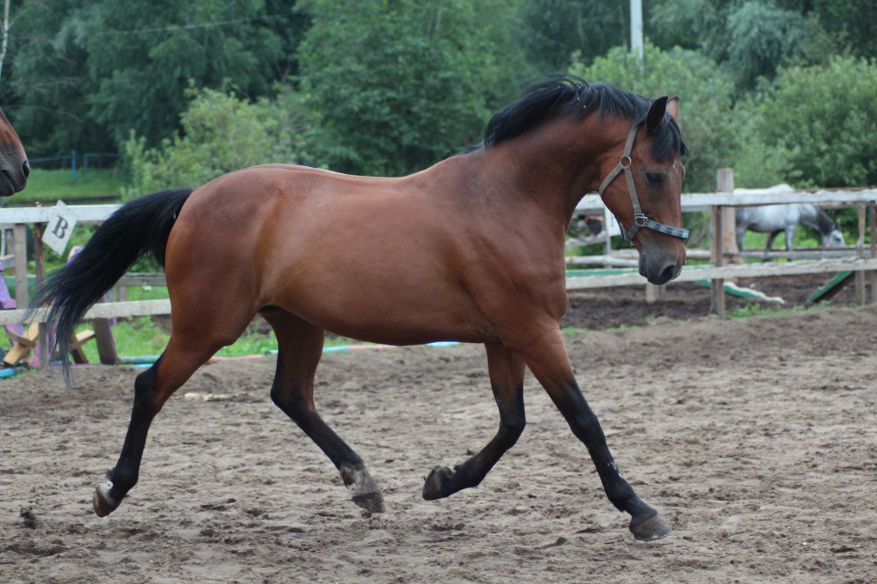 Необыкновенно смелый, могу ему доверить решать, стОит нам идти в какую-нибудь сомнительную канаву/речку или нет. Для меня это самая безопасная лошадь, ездила всю беременность, пока живот не уперся в переднюю луку. Удобный и мягкий, подвеска, как у дорогого лимузина. Но в полях рысит только махом. На карьере сижу, даже потерявши стремена, уверенно.