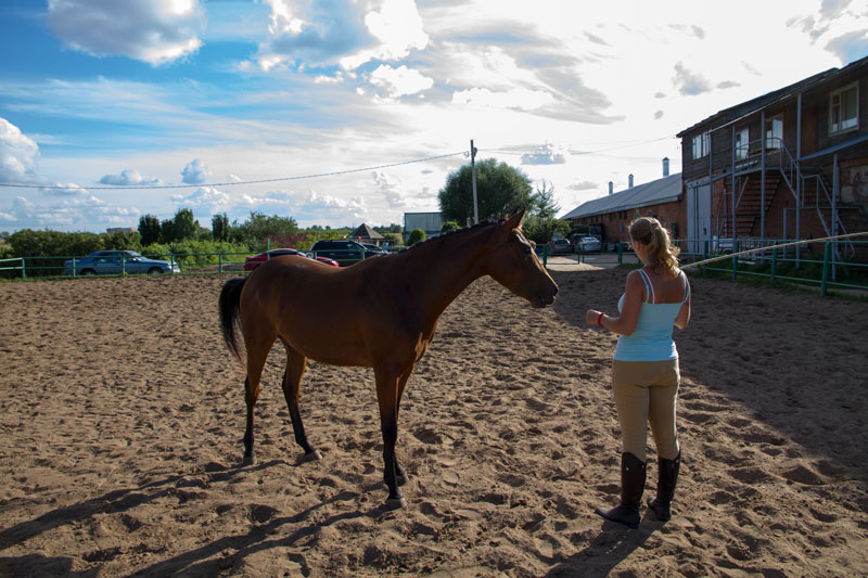 Ань, я не знаю какое прошлое у коня, что у него со спиной и почему. Про вестерн я упоминала скорее в плане работы на рыси - он сильно был закорочен, у них же шаго-рысь, вместо полноценной рыси. Большую часть времени мы его расширяли, включали зад, проводили. Просто нос опустить он может, но он делает это не в контакте. Боковые мы на рыси не делали, только на шагу, не готов, ну и я не могла ездить на учебной. А про спину не могу сказать, он в деннике стоит с такой спиной и еще мне кажется, что довольно сильно перестроен, но линейкой не проверяла.