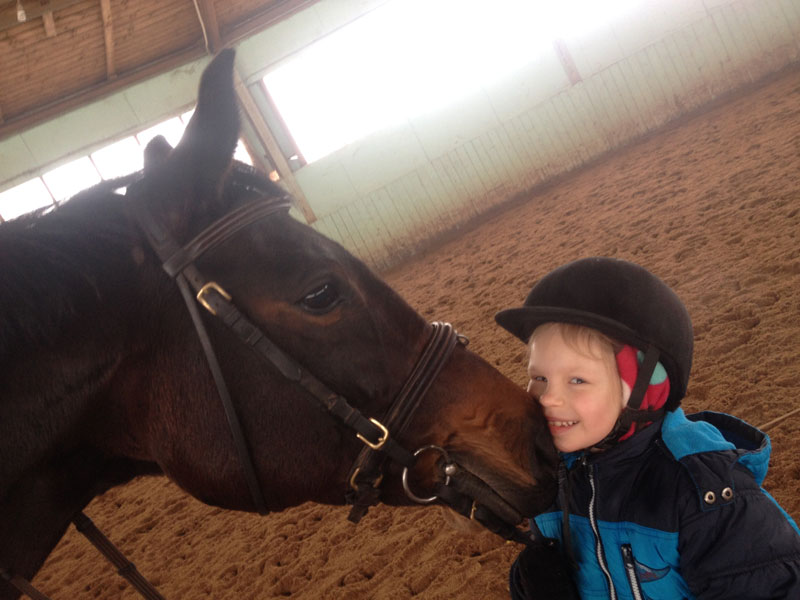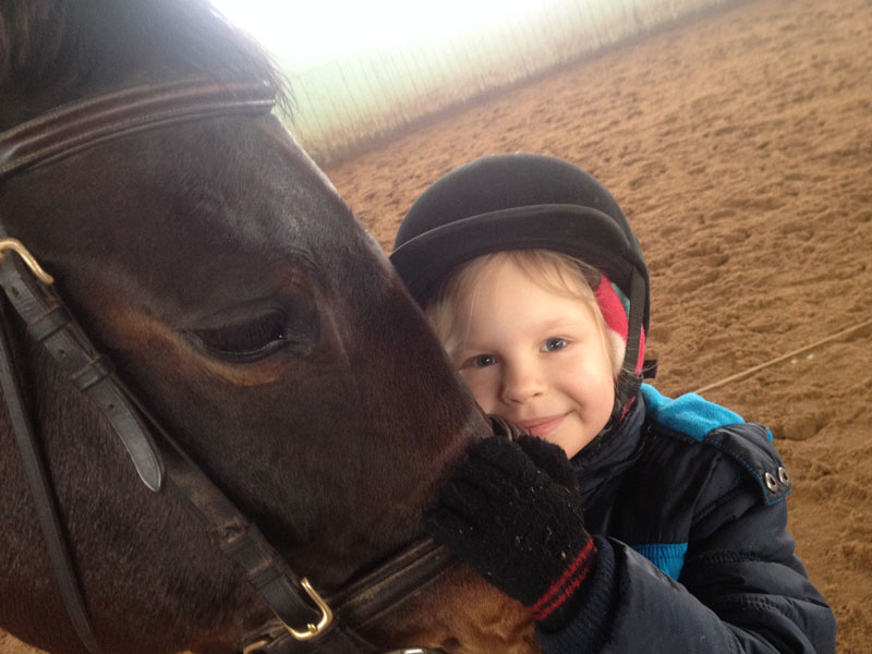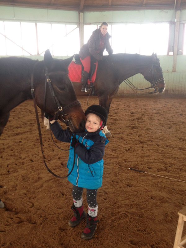 , а конь возьми да и развернись на корде -- и на нее! Как не убились, не знаю! Причем ладно, когда сама лезешь (сам дурак-сам виноват), но когда ученика своего слабенького так подставляешь!.. (бедная Юля с Барсиком уже 4-й день икотой мается