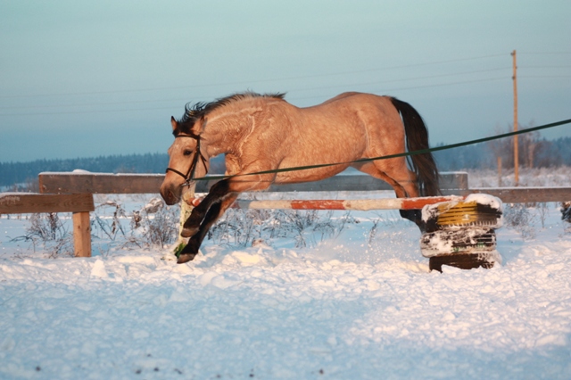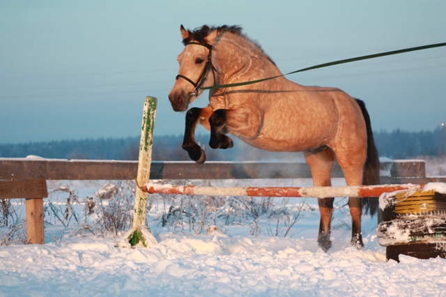 На самом деле, ничего особо интересного сегодня и не было. Почистились, поседлались, пошли. Отгонялись на корде. Специально провоцировала коня на козлопуки и подрывы, ну так, для удачного кадра) А он быстро понял чего от него хотят - козлил и прыгал в специально обозначенном месте=) а еще хрюкал и фыркал на радость публике в составе пяти человек. Потом поставили препятствие... ну не в настроении он был сегодня прыгать!! Столько народу стоит и у КАЖДОГО же в кармане (по мнению Желтого, конечно) может оказаться бездонная бочка сахара! В общем, ничего путного не получилось, зато посмеялись над его глупыми моськами.