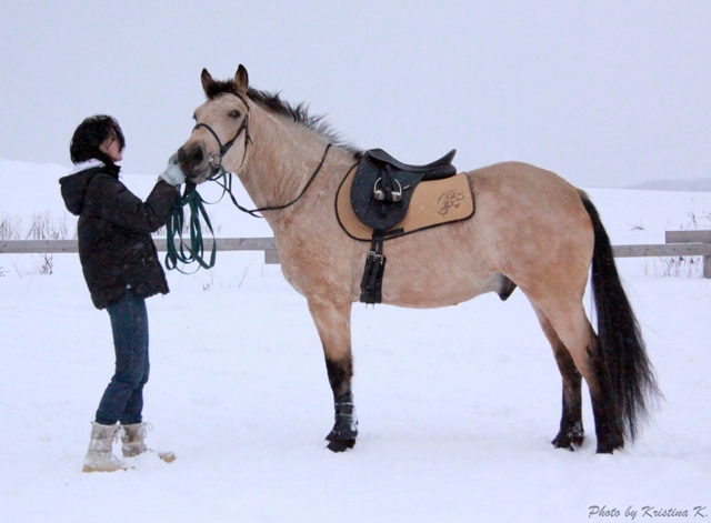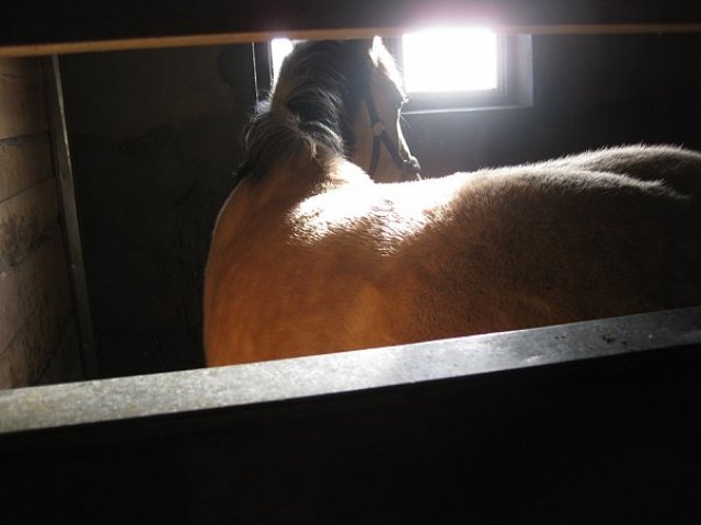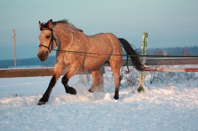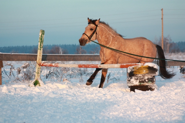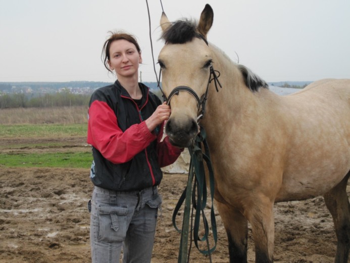 Зашли в конюшню. Я только потом поняла что сделала и поняла, что у нас поведенческий прогресс. А было вот что: зашли, встали около денника, я сняла уздечку и одела недоуздок. Казалось бы, ничего особенного. НО! Обычно я одеваю уздечку поверх недоуздка (лень матушка, ага) и, когда снимаешь уздечку, коня есть за что взять. А тут!!! Он стоял БЕЗНИЧЕГО и никуда не свалил, а всего-лишь потянулся и ухватил сена. Ура-ура!