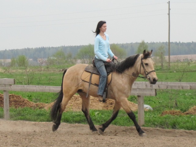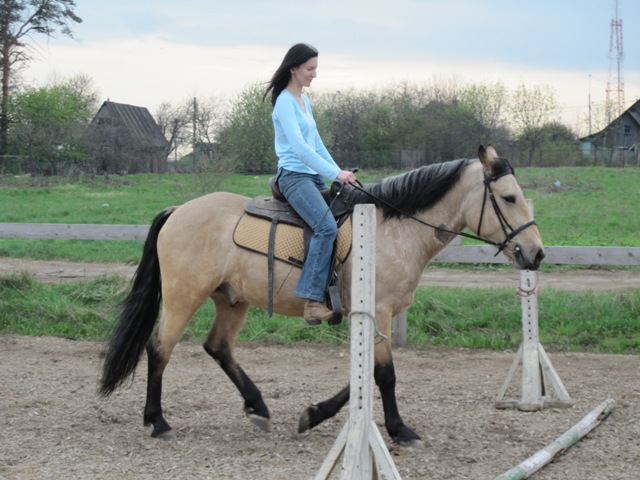 Итак, я взяла в привычку садиться на коня без предварительной работы на корда. Обнаглела, обленилась и вообще, хватит детский сад разводить. Не сказала бы, что он капец как изголяется. Так, играет в пределах разумного. Главный показатель разумности на данном этапе - наичие меня в седле от начала до конца тренировки =))) Ничего особенного мы не делаем, так, работаем над общим послушанием. Получается под настроение. В один день - еле ползает (при этом козлопучит с удовольствием), в другой - носится как ужаленный по плацу, скокает. Из особых достижений - остановка с галопа. Не знаю, может это вредно, может рано, но конь останавливается без каких либо усилий и без перехода на рысь. Останавливается, значит может. Я так думаю. Но это относится к тем случаям, когда он меня слушает. А вот когда не слышит, приходится в бараний рог сворачивать. Недавно в гости приезжала подружка. Попала как раз в тот день, когджа конь решил скОкать. Сказала, что драндулей надо ему дать за такую работу, а мне медаль за терпение и выносливость. А я все-равно довольна лошадью. Молодец, Дрелечка.