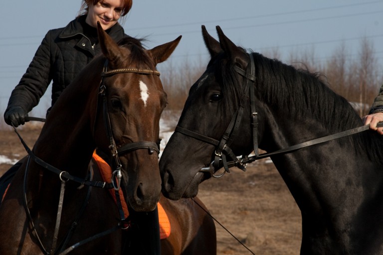 Барограф (молодой конечек, 4 года ему будет, маааленький такой)) пони-класс) сначала пожал ушки на Апреля, Апрель с ним ни разу не ездил, но заинтересовано поглядел пару минут, а потом вообще потерял всякий интерес) Уши не закладывал ни разу)