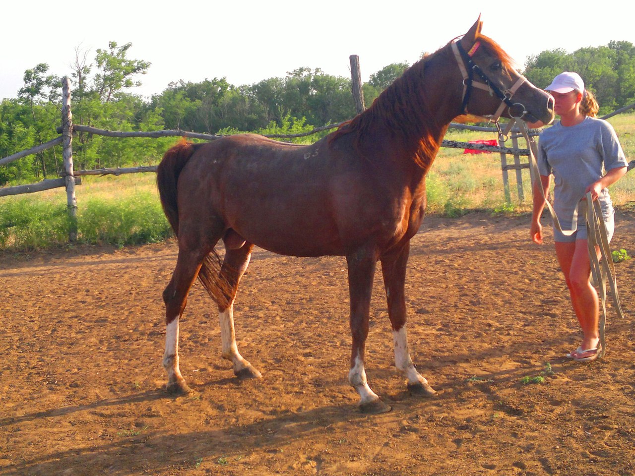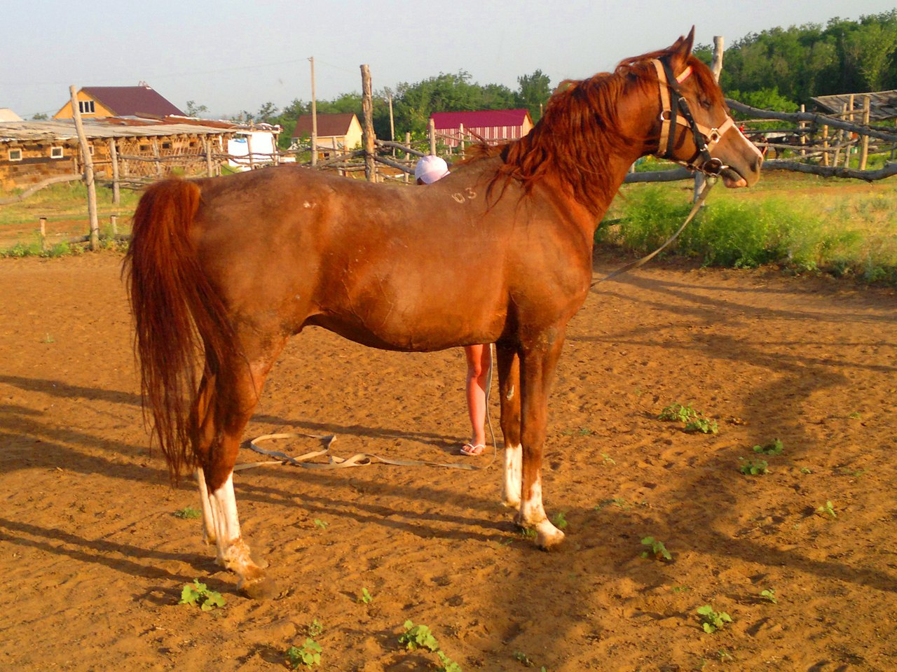 У нас тоже жили арабские помеси, обе лошади - арабо-буденновские. И кобыла, и мерин были очень добронравными, за ними не водилось никаких неприятных фокусов типа отбить, укусить или, скажем, высадить. Но детей или слабых всадников мы на них не сажали, ибо работали в полях. Эти две лошади легко заводились, могли танцевать в поводу, поиграть под седлом или выскочить из смены, предлагая свою готовность бежать быстрее, но при этом не растаскивали. Мерин имел почти квадратный формат и маленький арабский рост, хотя я однажды видела чистокровного араба, имевшего в холке хорошо за 170 см. Мы тогда ездили в отпуск поработать на арабском отделении Хреновского конзавода. Наша кобыла была высокой, пошла в своего буденновского родителя, при этом сохранив некоторые типичные арабские черты другого. Мы обычно ставили ее в голове смены: она смотрелась, как бокал шампанского - легкая, воздушная, стремительная; ей было тесно в смене и некомфортно идти за хвостом. Обе лошади были очень приятными в общении и уходе, а для крепкого всадника - и в езде.