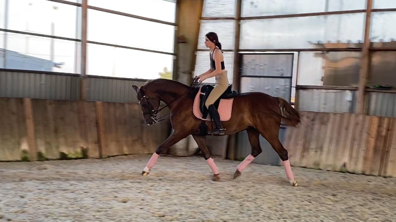 Мягкая, активная, отзывчивая и добронравная. На просторных, летящих движениях, с хорошим природным импульсом и перспективой в выездку.