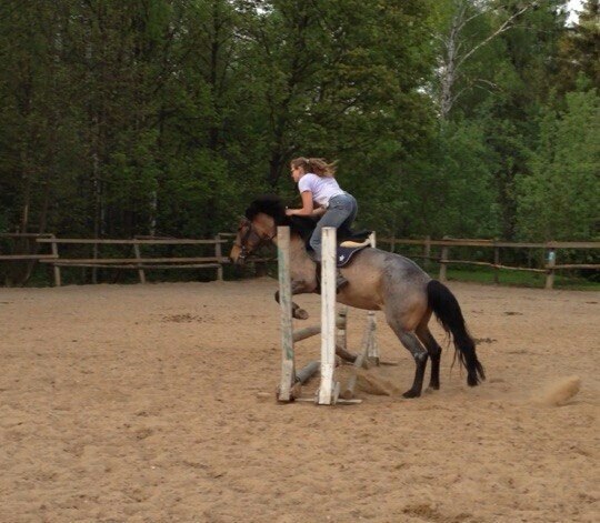 Любит прыгать, ходит маршруты 80см (на корде до метра), бегает детские езды, не много любительских. Кобыла с очень удобным прыжком, хорошо идёт на препятствие, быстро запоминает маршрут. Выезд на соревнования приветствуется.