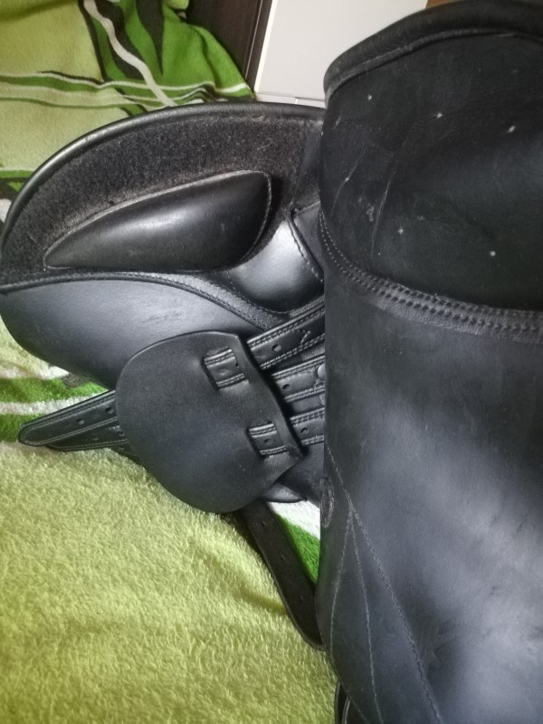 Б\У седло в хорошем состоянии с чехлом, хранилось в тепле, регулярно промазывалось. Размер 17.5.