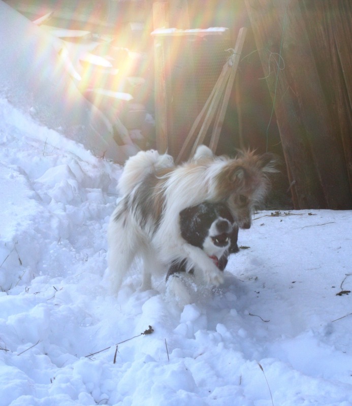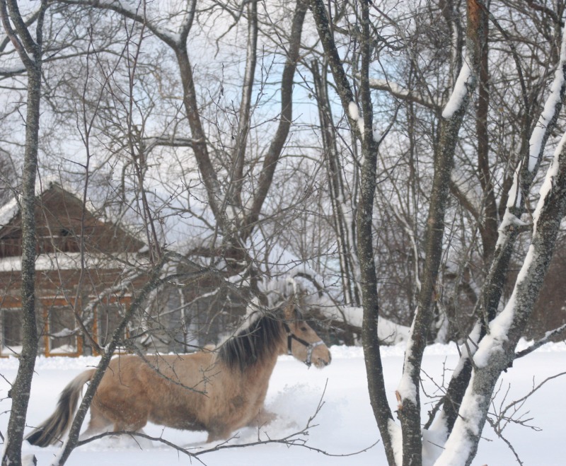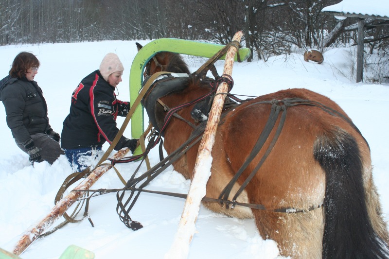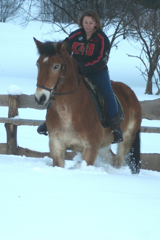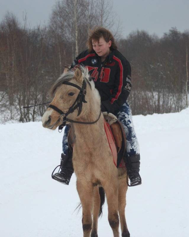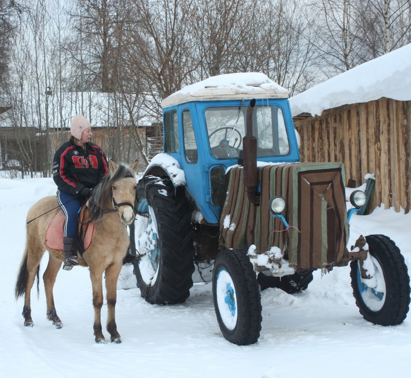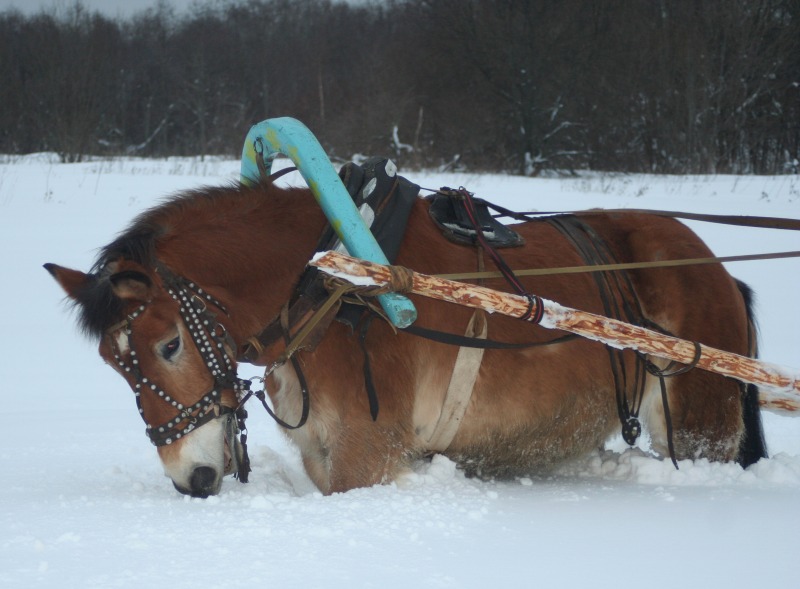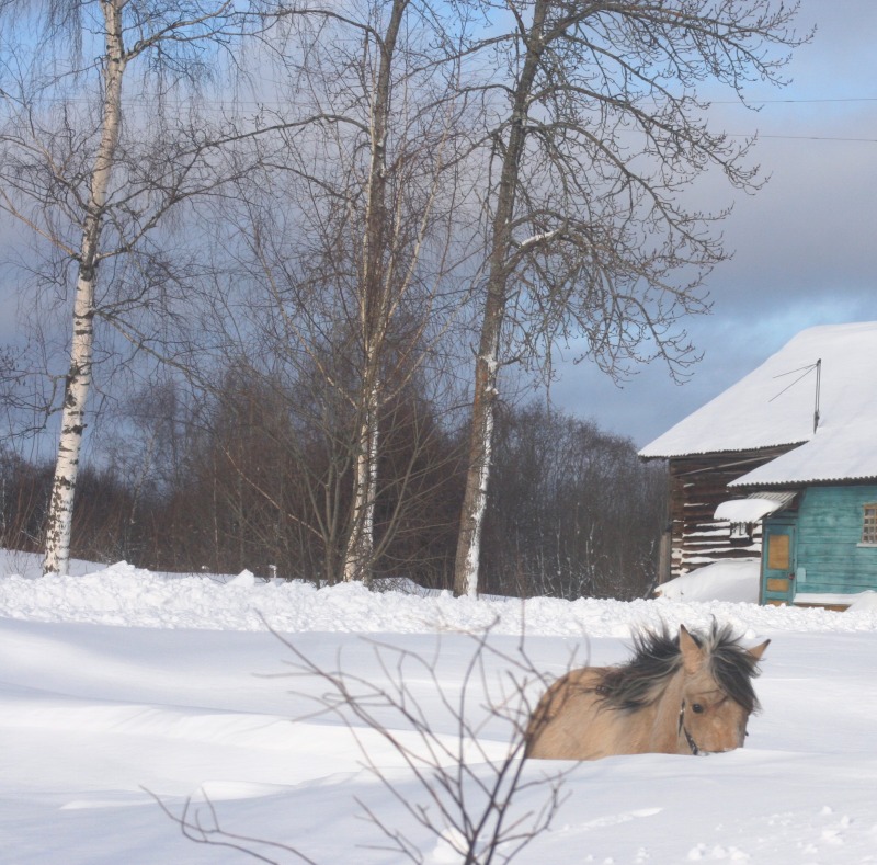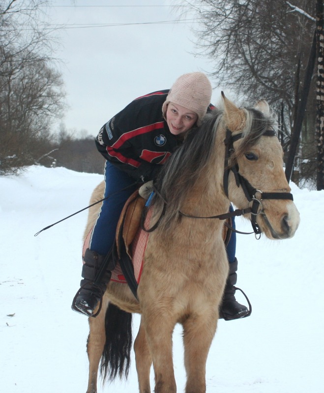 . как то я это начала воспринимать как игр без злости и страха и как то стало легко. И идем на встречу лесовоз. огромны и страшный и еще на тросе везет миниавтобус. Серебряный. как прыгнет в сугроб. я за ним . но упала и его потеряла. он ускакал. хорошо завернул к соседям. а не по дороге вперед. лесовоз остановился. я побежала поймала мелкого. прошла еще вперед к соседям. постояла погладила. пока лесовоз проедет. потом мы пошли домой. путь удлинился. но это даже к лучшему. опасности сближают. потом мы поделали поклоны и пошли домой. Я его поставила в денник. а сама поехала на Бьянке. сначала мы с ней в бочке снег утрамбовали. для кордового круга. потом пошли на краковяку. потом в другую сторону. погалопили. потом в руках отшагались. вели они друг без друга хорошо. день прошел не зря. Завтра наверное их на свободе погоняю. а потом отпущу гулять и пофоткаю. выходной они заслужили.