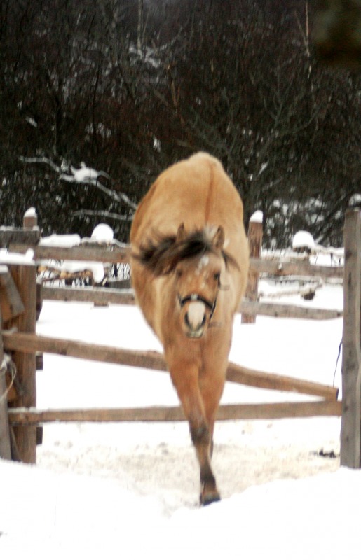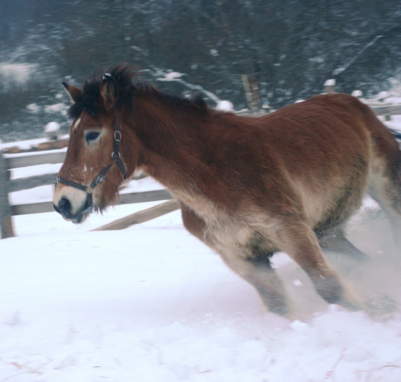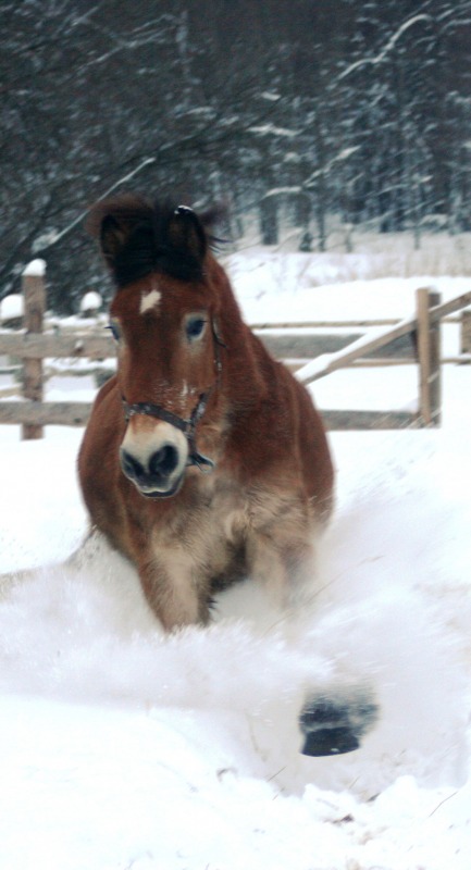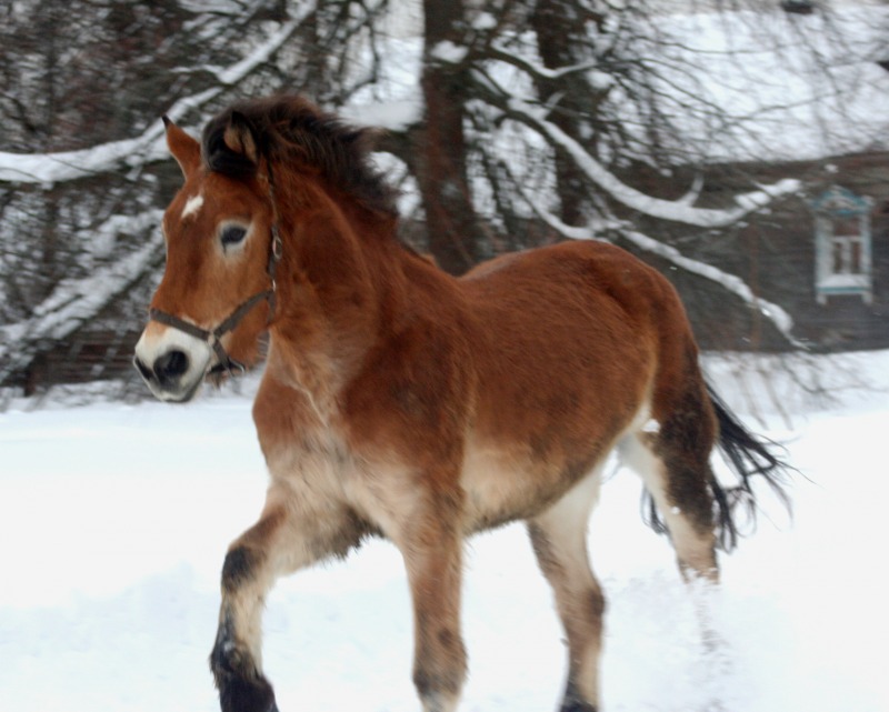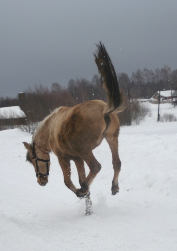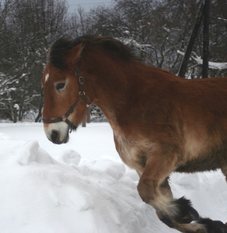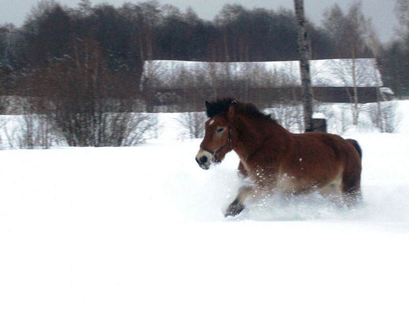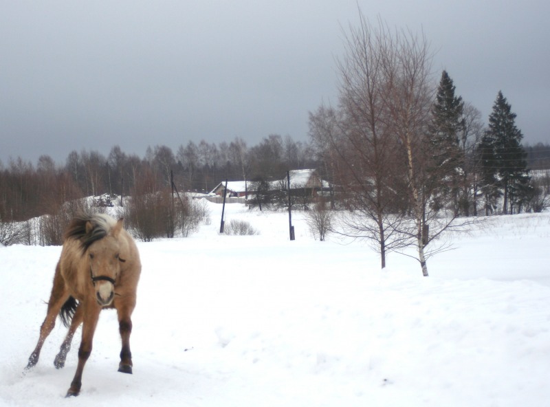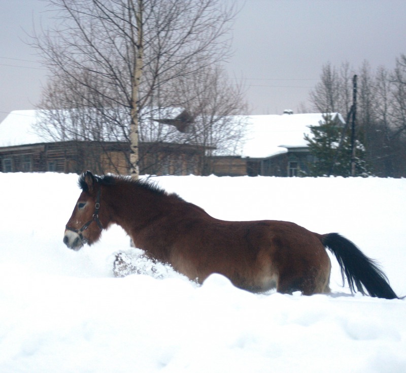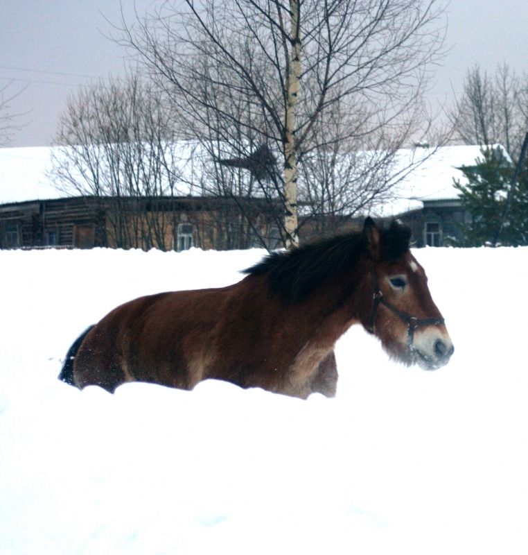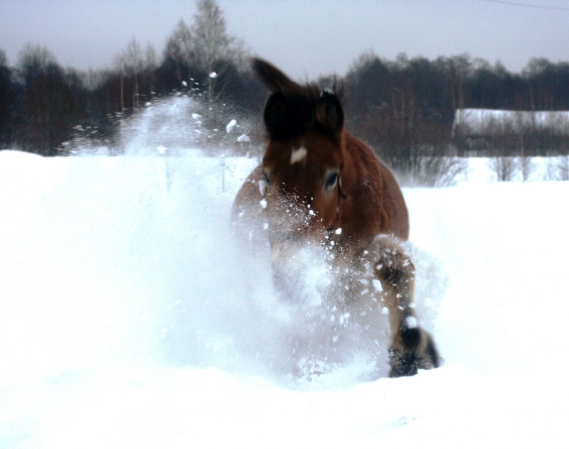 лошадь бороздит снежные просторы как ледокол в арктике -это, что-то! классно :!: