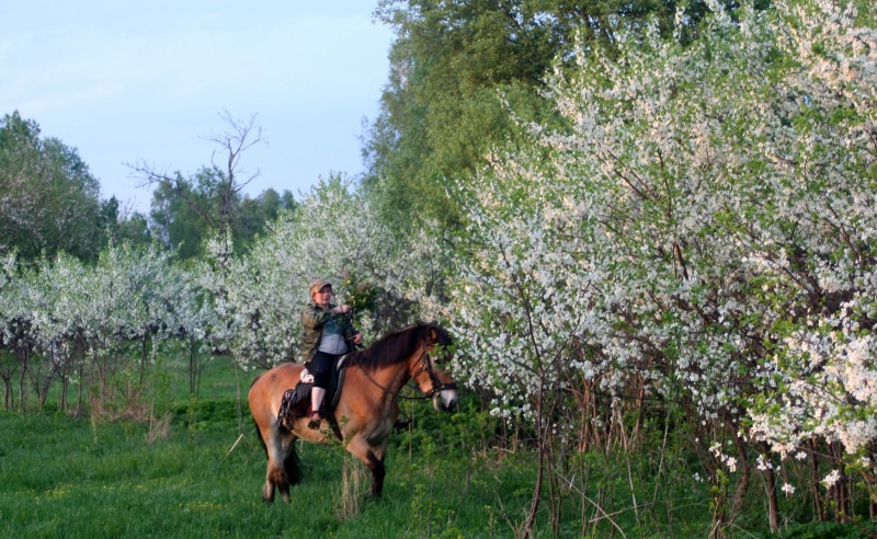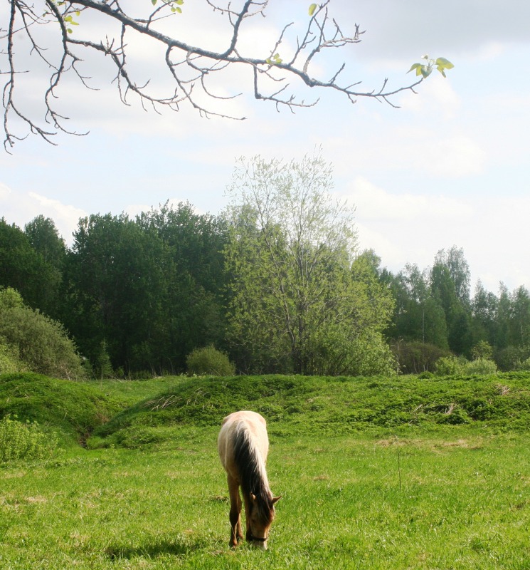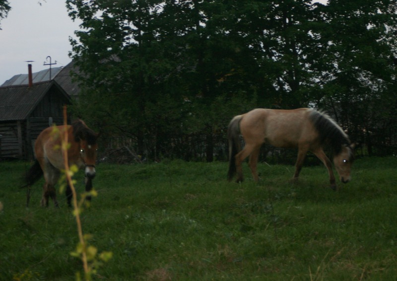 Сегодняшний день оказался благотворным, странно на расстояние мы со Славой стали офигенские друзья. Сначала мы позанимались дровам, потом перегнали лошадей в руках ближе к дому,там отросла трава, покосили траву у дома, напилили еще слег. На поле встретили огромного ужа, он с метр ростом, постояли, полюбовались, как он лениво, извилисто уползал от нас, поужинали, оседлали лошадей. Слава меня сфоткал на Бьянке, а поехала я на Серебряном, фотоаппарат забыли. И поехали мы в заброшенную деревню, лошадей оставили постись на кордах с отпущенными подругами, а сами полазили по домам. Да дома все разбирают по кусочкам, где изразцы с печек сняли, где полы. Разруха полная, из окрестных деревень осталось только Хребтово, сколько лет , еще оно продержится, неизвестно. Лошадям там понравилось, наверное то поле где они паслись, еще сохранило запах лошадей. Так как еще относительно не давно ,там жил мужчина, который держал коней. Походили посмотрели и поехали домой. Мне понравилась сегодняшняя не торопливая прогулка, правда чуть-чуть отдает грустью, но интересно представить заходя в каждый дом, кто там жил, что делал и почему покинул родные края. Вернулись, лошадей поставили на выпас попили чай и по домам.
