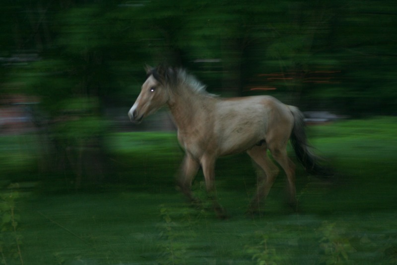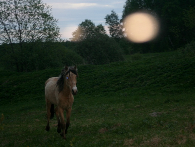 Да человек предполагает,а ...Вот и я решила вчера отдохнуть от лошадок, отдохнула ядреный корень :twisted: .Только я переделав все дела в субботу за два дня, что бы в воскресение вообще ни чего не делать до вечера.Расположилась с мороженым у буки, читаю дневник, так увлеченно читаю. Смотрю в окно Бьянка свободно круги с повизгиванием нарезает вокруг Серебряного. Ладно вышла, дала ей пробегаться, поймала, посадила обратно на цепь. Только, закопавшись поудобнее в подушки, открыла буку, читаю дневник, посмотрела в окно, под окном стоит Серебряный, без недоуздка. Как раз смеркалось , взяла фотик люблю фотки в сумерках, какие то они не реальные, погоняла его туда сюда на свободе. Потом наконец то с сделала из правостороннего, левосторонний недоуздок, пока он бегал, было время подумать, оказалось все просто :)