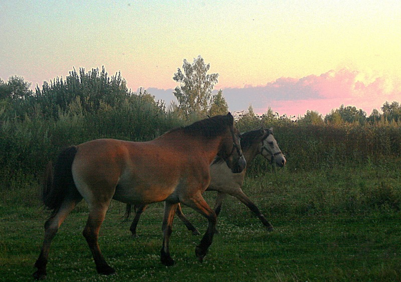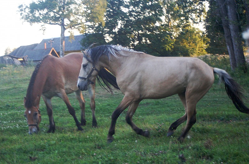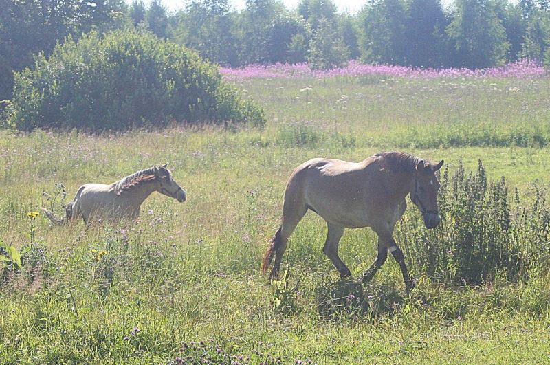 , пирожки), а цены смешные. И сытые и довольные помчались домой, оводы еще не успели съесть лошадей, но уже начали пробовать их на вкус. Лошади с поля быстро ринулись домой и создали пробку при входе в сарай и не давали нам пробраться, что бы открыть им двери в денники. забаррикадировав своими попами проход в сарай. Это мы разрулили, потом ребята возились со сцеплением, а я пошла спать)) . Так как жару я не переношу и ночью в отличие от остальных не спала ни часа. Когда проснулась, шестерка уже была на ходу, мы приготовили, поели, отправили лошадей на поле и договорились завтра в пять утра встретится, что бы пойти на страшное болото))) .Об этом болоте местные слогают страшные легенды , о голых девах- утопленницах, которые утаскивают праздно шляющихся путников в трясину. Но мы то, в такие сказки не верим, поэтому завтра в 5.00 утра едем на болото за черникой, но это уже будет другая история)))
