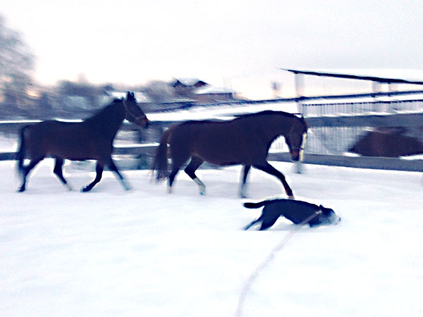 Приходилось только очень следить, чтобы не бросался уж прям совсем под копыта. Тетки делали сложные лица, но лезть за Максом в сугроб им было неохота