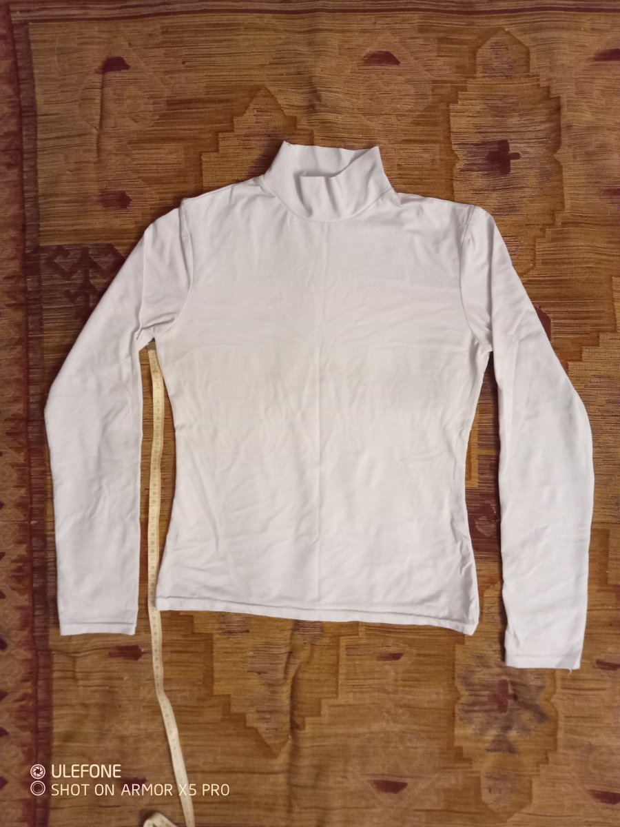 Продам белый бадлон, размер примерно 44. Состав: 65% сotton, 35% polyester.