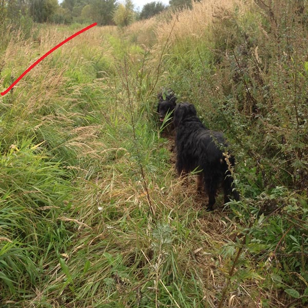 Ибо глючится мне, что собаки стоят в одной из колей, а вторая просто не попала в кадр из-за высокой травы и заниженной точки съемки.