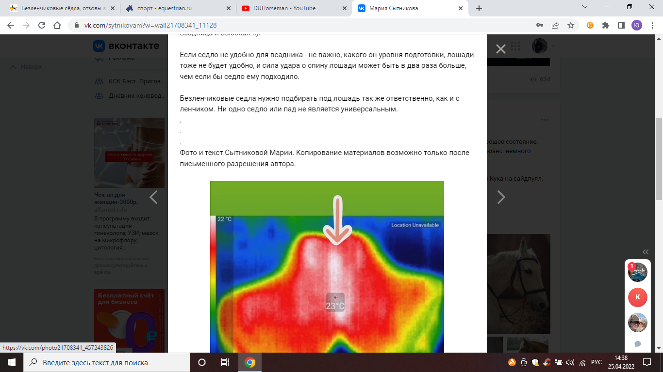 Обратите внимание, на крупе позвоночник тоже немного выделяется по температуре, хотя седла там не было ;-)