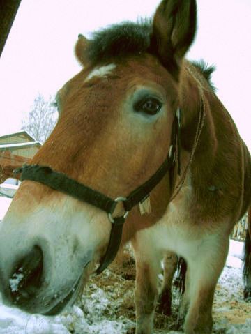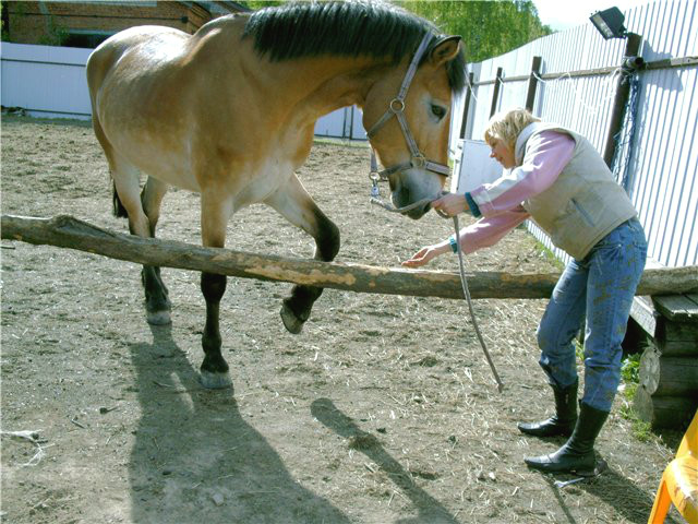 И так сегодня, Руслан заболел совсем у него 39 и я болею, но у меня выше 37.2 никогда не бывает, так что весь сельхоз сегодня на мне, с утра покормила всех и гулять отправила, думаю дай поболею, тут СМС от Аленки. Ты ленивый Чилийский лох поднимай свою чайниковскую задницу и иди работай лошадей, а то приеду на своей Газели коневозке и забиру их в Москву. Ну пойду работать , лошадей двое я одна, не беда. Сначало надо Бьянку хорошим манерам обучать, а как :?: да на примере Ромки. Поставила их рядышком, сначала Ромку чищу, потом Бьянку, уздечку на Ромку, уздечку на Бьянку,седло на Ромку, седло на Бьянку. Бьянка все сделала прекрасно, правда воздух кусала, при затяжке подпруги, но воздух мне не жалко, его много. Все манипуляции я сдабривала песнями и сухарями, сухари им правда больше по вкусу, ну я их понимаю, т к. слуха у мене нема. Потом села на Ромку и поехали пошагали и порысили, вот это рысь и как ему бегать нравится, все уж говорю милок хватит шагом, постепенно нагрузки увеличивать будем, отшагала разседала, на корду привезала, рядом с полем, чтобы Бьянка видела мужа и не нервничала. Ромка увлекся корой деревьев, любитель он этого, а я за Бьянкой пошла. Пошагала, порысила, галопом пять кругов и три прыжка. Потом вспоминали команды с голоса. Малышка -сокращеная рысь, назад осаживание, раз два три галоп-галоп с места, стой-резкая остановка с рыси и гаопа, сухарей Бьянка наелась и команды все помнит и выполнила на пять, отшагала Бьянку, отвелав в леваду, чомбур прикрепила и пошла за Романом. Романа отпустила, скомандовала домой и он пошел. Дальше прикол Бьянка как верная жена ждет мужа, что бы сено отобедать, я тем временем пошла домой напрямик , а Ромка вокруг, я сено в леваду принесла, баранов загнала, а где Ромка, Бьянка ржет, а Ромки нет, Бьян не волнуйся, сейчас найду. А этот хитрец заныкался за стеной дома, так что ни я,ни Бьянка его не видем и ворует сено с рулона. Я ему, это что за едрен батон, а нука домой жена ждет. Роман ,А я что я ни чего, я хороший семьянин, ну панимаешь нам мужикам иногда надо развлечься, сено там ,Футбол, пиво и в леваду к жене. Я Бьянку с чембура отпустила, она прошла мимо сена , посмотрела ему в глаза, дала по шее и гордо виляя попой ушла обедать.
