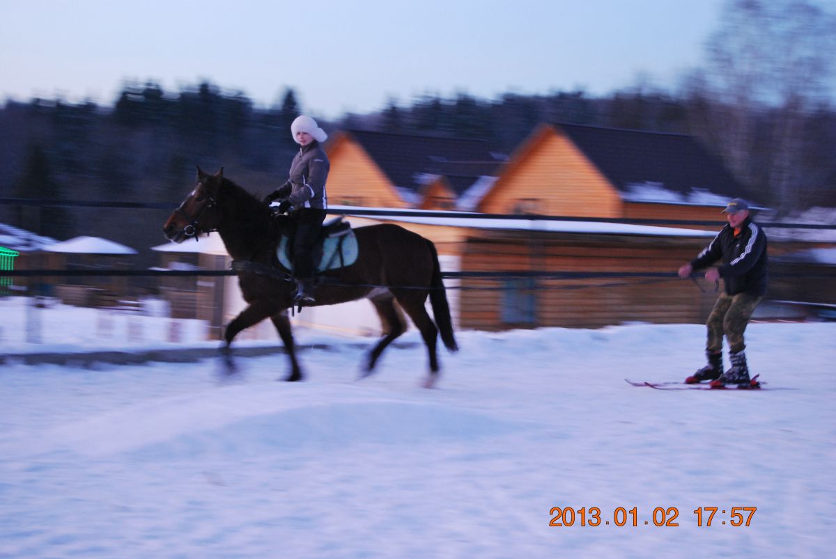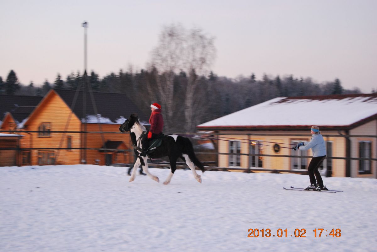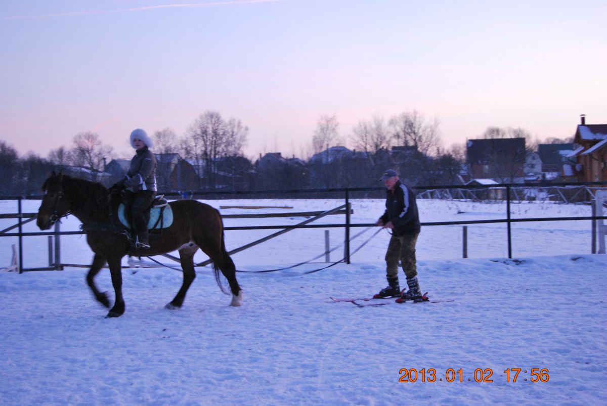 Лыжник тогда должен быть продвинутый. Гоша имеет привычку вкапываться, встречаясь с чем-нибудь новым и пугающим. Я на лыжах уж лет ...цать не езжу; ну и представьте картину маслом:
