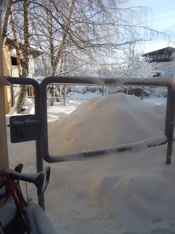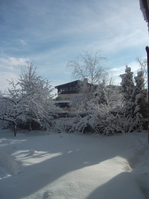 В итоге приехала домой, понедельник утро, труба зовет - работа ждет, ставлю комп, ищу провод... упс.... и не нахожу. Спасибо шефу гостиницы - выслал провод мне в понедельник же. Так что пришлось уйти в вынужденный отпуск до четверга, пока пришла посылка. Оказалось, что жить без компа можно ! а работать нельзя... Зато я провернула кучу дел, как-то : расчистила трех коней, привезла 4 мешка навоза, посадила персик, нектарин и желтую черешню, магнолию, кучу декоративных кустов, напшикала бордосской жидкостью старую вишню, напилила полкуба дров из старой сливы .... Спину ломит, плечо отваливается... А, еще играла в казаков-разбойников: лазила по закоулкам сада возле лошадиного пастбища и обнаружила задавленную лавром полуживую старую розу. Знаете, какой диаметр ствола? см 8. И длина ветвей - метров по 4-5. Баобаб просто. Нарезала черенков, совсем не время, конечно, для этого, но попробую вырастить.