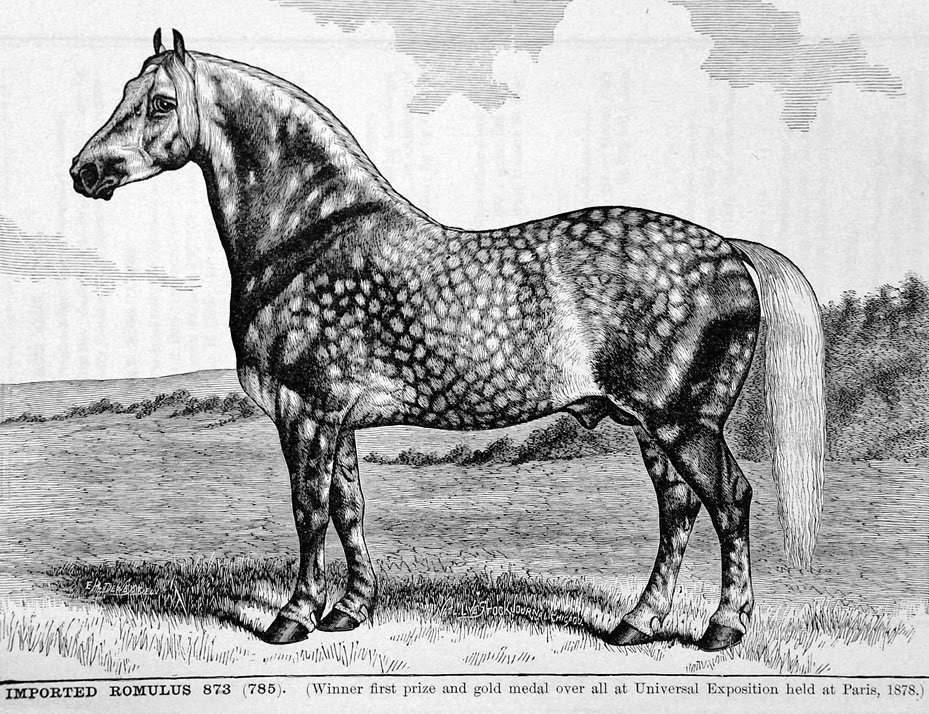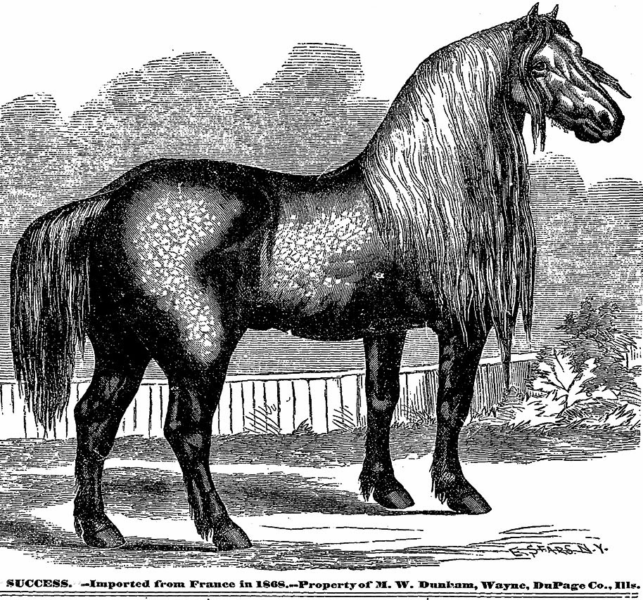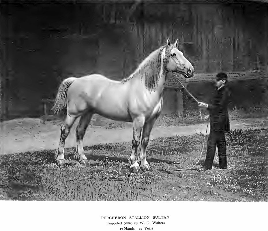 Вот архивные изображения першеронов, в том числе экспортированных в Америку