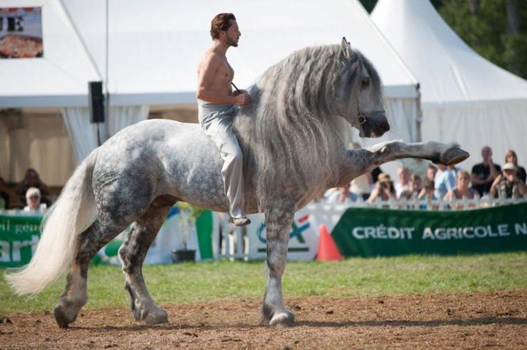 Нынче уже пройден этап, когда любыми средствами тяжей сохраняли, пусть даже как мясных. Нынче требования стали как и столетие назад: красивая с правильным экстерьером рабочая лошадь, на движениях и импозантная. Требования времени. К примеру, вот такими были раньше тяжеловозы бретонский и першерон ( верхом? да с удовольствием!)