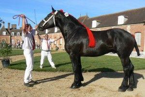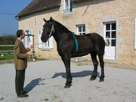 а вот видео представления призера чемпионата Франции першеронов, с простой ковкой и без понтов (хотя видно что могли бы и подсобрать передние копыта получше, имхо конь слишком долго жил босой на сыром пастбище с мягким грунтом :) )