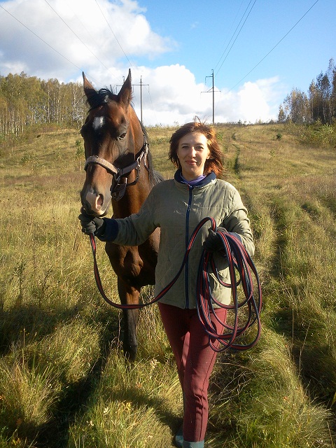 На днях собралась в поле на Пятке верхом, решила взять Габика, пусть побегает. Он бежал, даже без недоуздка. Есть у нас тропинка прямая, после которой заканчивается «лошадиный» выпас и начинается «коровье» поле, доехав до «коровьего» поля Габик низко опустил голову, скрысился и начал нападать на Пятку. Вначале только угрожал, но потом даже укусил один разок за шею. Пятка была возмущена до предела!!! визжала и топала ногами!!! но жеребец не здавался и заходил снова и снова. И тут до меня дошло: «он не пускает нас в поле, из территориальных соображений и поворачивает в сторону «лошадиного» поля!».