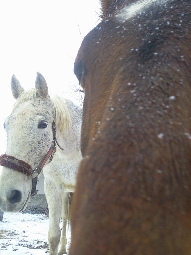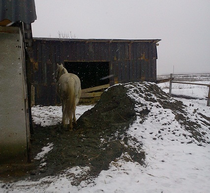 А у нас слякоть и морось какая то. Лошади топчатся вокруг сарайки в попонах. Кормила кобыл утром, привязывала, а Габика кормила на сеновале, прямо ведро ему поставила в сено, так он не достанет копытами. Любит он ведерко копытом поддевать во время еды, грохот стоит страшный, а уж если таки подцепит, то летит ведерышко аж на другой конец двора. Так красочно взмывая и осыпая путь кашей! В сарае мы конешн ведро засовываем в покрушку, так не достает. К утру покрышка с ведром аказывается аж в противоположном углу отдельно с ведром, вот как так можно метелить???