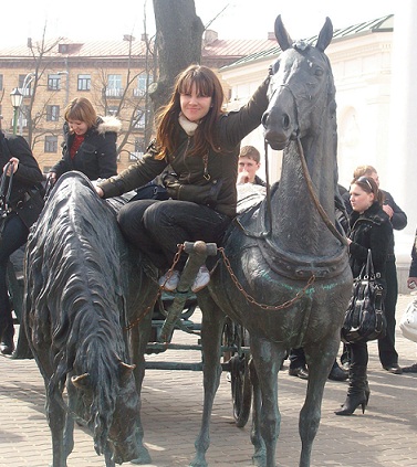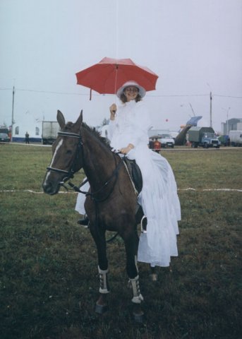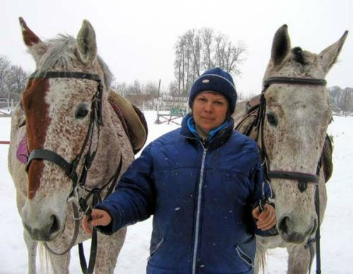 Потом в возрасте 6 лет родители окочательно переехали в деревню и уход за лошадью стал моей обязанностью. Научилась со временем запрягать лошадь в телегу, только очень трудно было совладать с дугой, она была тяжелой и нужно было прилагать невероятные усилия, что таки мне долго не удавалось. Летом верхом пасла коров до развала колхоза, а затем ухаживала за дедушкиным жеребцом, потом он стал мерином. С десяти лет езжу без седла, оно сломалось. Поэтому придя на конюшню я уже что то умела и знала как подойти к лошади, через 2,5 года в секции меня таки взяли в конкурную группу, где и получила второй разряд на Грани.