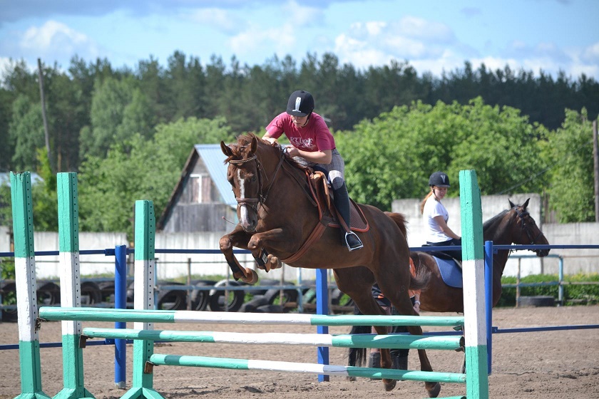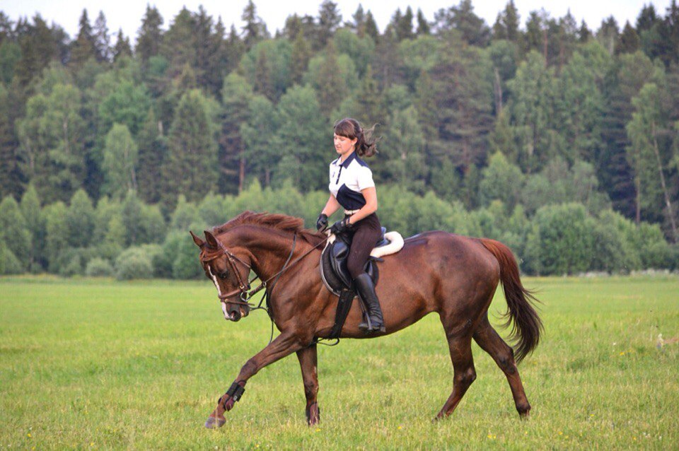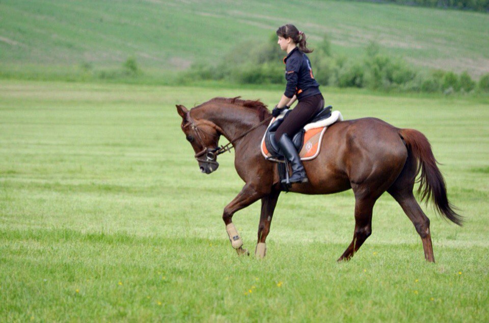 Из умений... Детские езды катает "на ура", элементы юношеских. Напрыгана в шпринте 150см, прыгает уверенно, с удовольствием, у кобылы отличная техника прыжка. Под верхом 100-110 маршруты, до 120 связки, выше не ставили. Выступала на чужих полях - не боится барьеров, не встает, не обносит. Леса-поля любит, не носит, с удовольствием купается и плавает в водоемах.