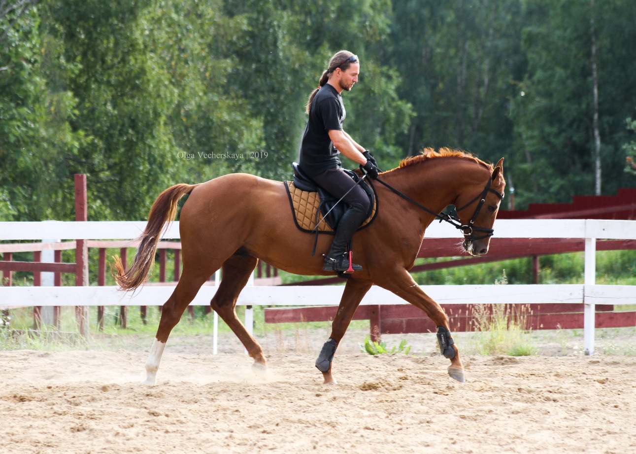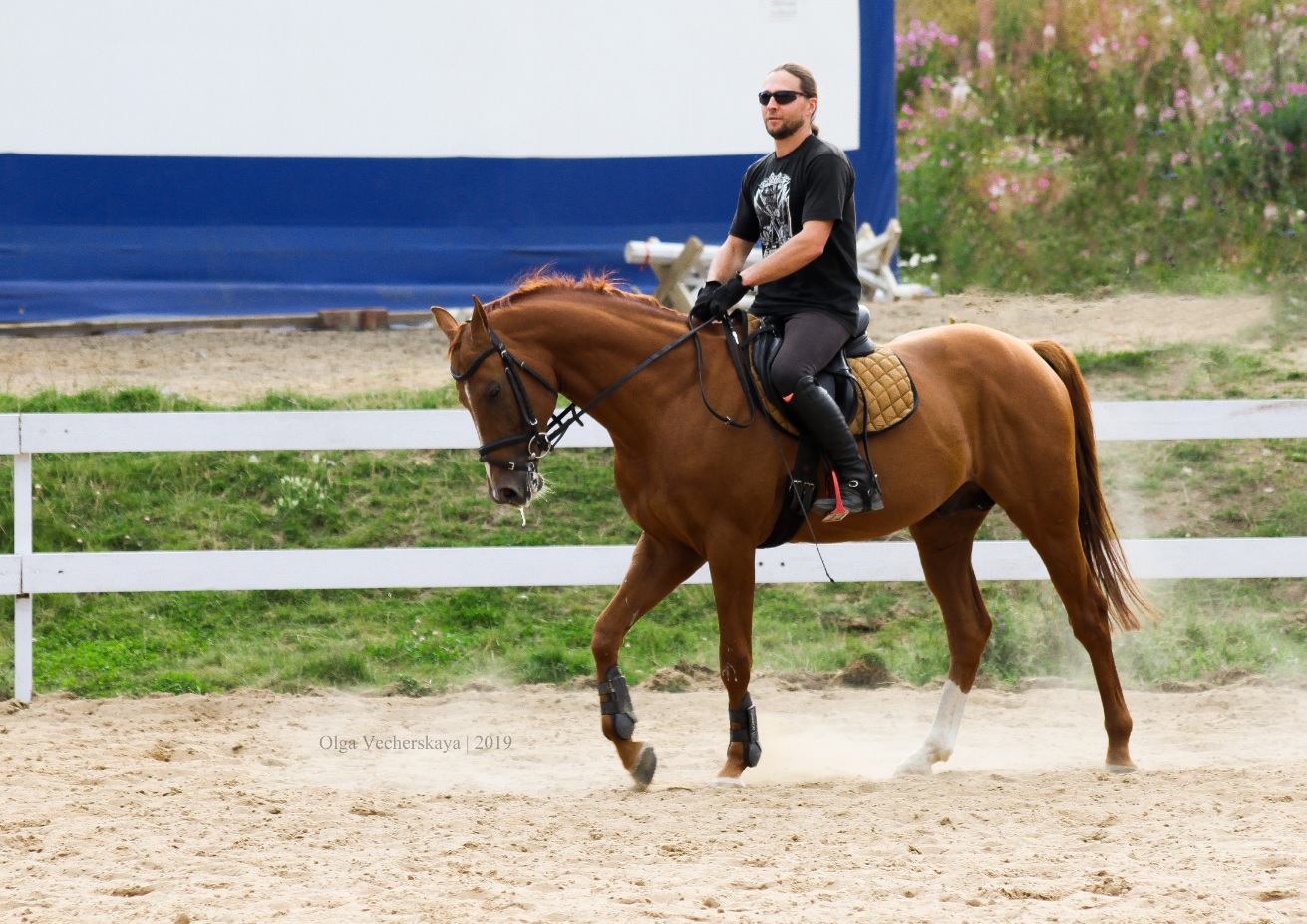 Под седлом не жеребцует. Прекрасно подойдёт как в конкур, так и в троеборье. Мягкий под седлом. Спокойно грузится,колется, бреется, моется и прочие манипуляции.