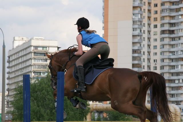 Галоп. Бегал неплохо, кое-где движения не хватало, но чаще все-таки он шел, как надо. Поделали переходы в рысь, поездила на полевой посадке. Потом сделали несколько менок. Направо он сменил только на повороте, а вот налево сразу. Отработали пару раз направо менку, менял, когда надо, похвалила. Сделала подъем на брошенном поводу, затем перевела в рысь, сделали чуть-чуть рыси на брошенном поводу и стали шагать.