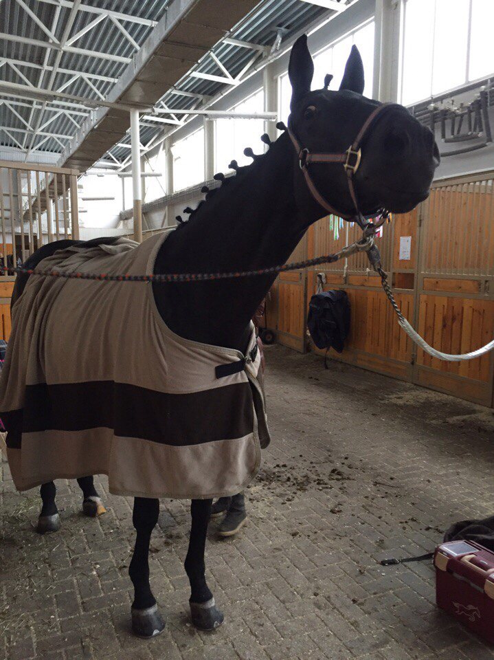 Лошадь всегда была в одних руках, выезжалась МС, на данный момент также находится в тренинге.