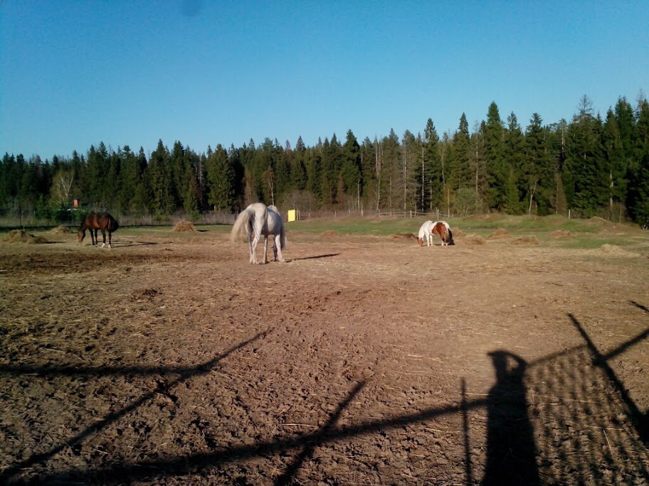 Есть и поля и леса. Летом можно купаться с лошадью в реке Истре (в трех км от конюшни). Узкая и неглубокая, но вполне хороша для тренинга лошади в жару.
