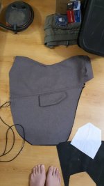 Купила по объявлению лоскутки мебельной ткани, которые продаются на вес, толстую резинку, нитки в цвет.