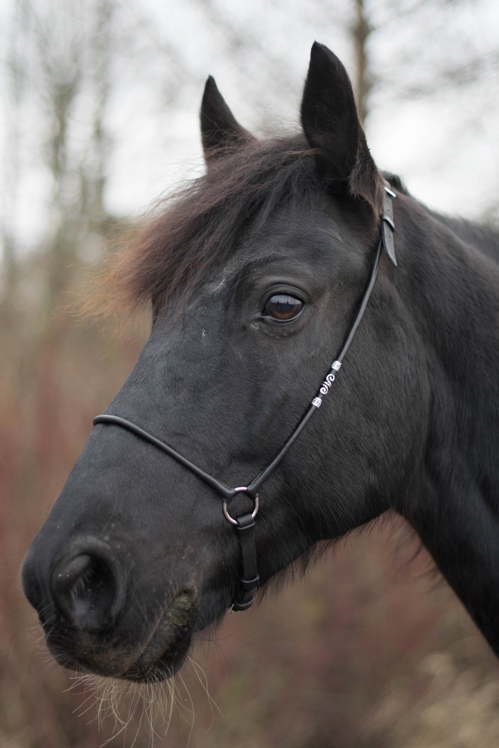 Выводной недоуздок с кожаной обшивкой, с регулировкой на затылке, с декором, с ремешком для съёмки на свободе. Размер cob - малый full. 3000 р.