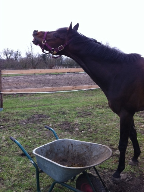 Я пришла, коня был недовольный, но от двери денника по просьбе отошел. Я зашла, поздоровалась, открыла дверь, заставила Бардо постоять при открытой двери, разрешила выйти и пошла готовить ему завтрак.