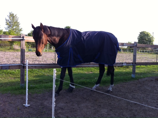 У нас странная погода, днем 20 градусов, ночью 1, может пойти дождь ои град и через 10 минут опять сухо...поэтому я на всякий случай "упопонила" коника на ночь...В нашу любименькую дождевую попону. Что обрадовало. Попону можно одеть и без недоуздка. (раньше я хоть и не держала коня, но почему то он считал что свободным в недоуздке надо стоять смирно, а вот без недоуздка-можно стоять а можно уйти.) Сегодня стоял "без".