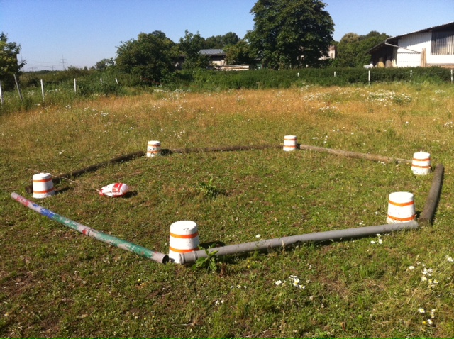 Так как вчера нам накрылась медным тазом бочка (занята и будет занята иппотерапией), я в расстройстве соорудила вечером на плацу "как бы круг" из палочек и ведер.
