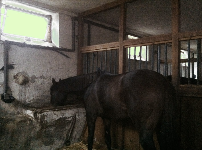 Блин, жалко же осела, ему больно (пусть не сильно), а он только крысится на меня обиженно и стоит на своем. Вот прям стыдно становится. Что я опускаюсь до таких терминов которые моя лошадь считает даже неподобающими ответа...