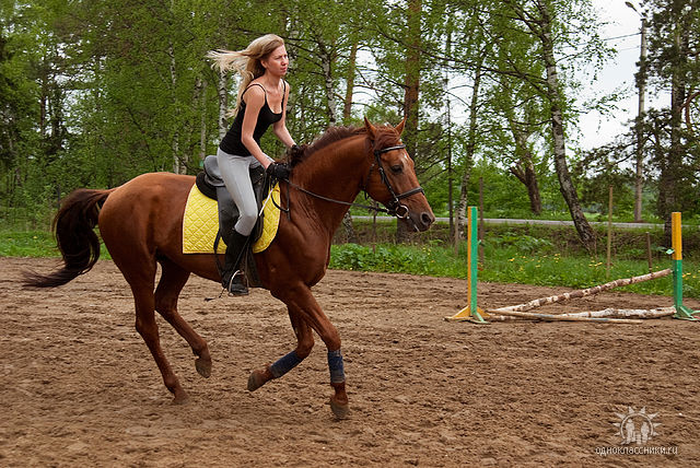 и после 2-3 темпов вот такая посадка у меня, вот хоть тресни, + начинаю хвататься за повод, ну и конь, соответственно уходит за повод тоже, спасаясь от дерганья железки...