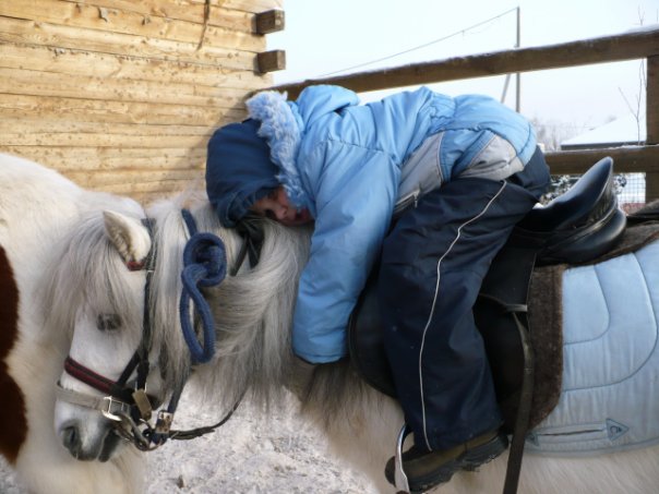 правда на лошадь я села уже после рождения детей, да и мелкий больше не занимается, замучил он меня баловством, может оно и нормально, баловаться, для его возраста, но мне реально на баловство денег жалко, лучше старшая пусть ездит, ей нравится, а мелкого больше борьба прельщает...
